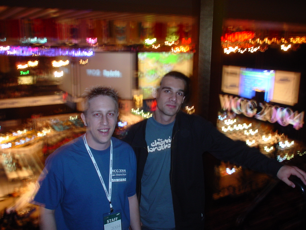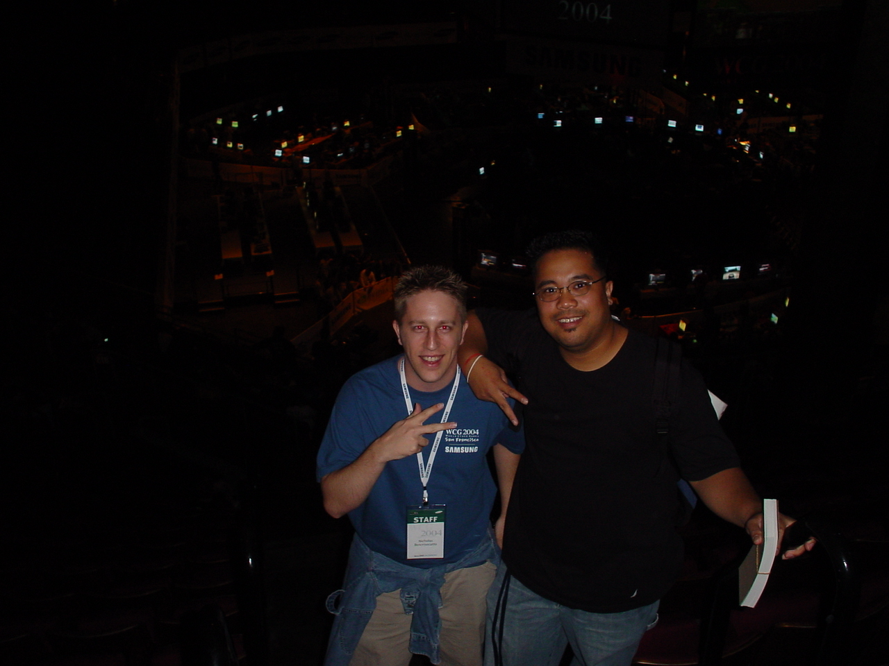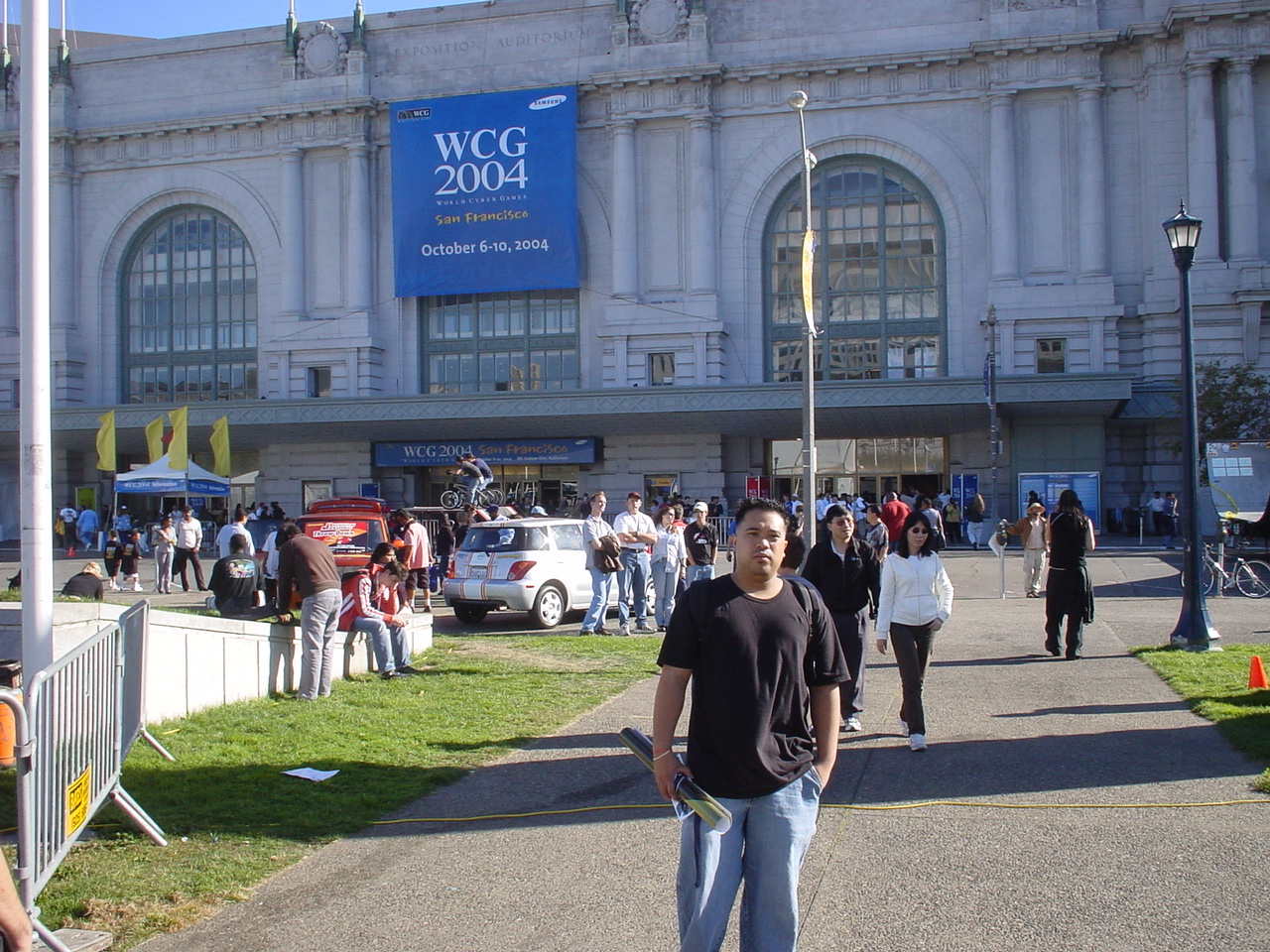 Once we were done with said errand we headed over to the Bill Graham Civic, where the World Cyber Games 2004 were taking place. Once we were outside, Gatekeeper came out with "Uncle Phile" from Nvidia and hooked us up with free passes to the event. I don't recall the circumstances of this, but I believe Gatekeeper was doing some kind of volunteer work for Nvidia at the event.