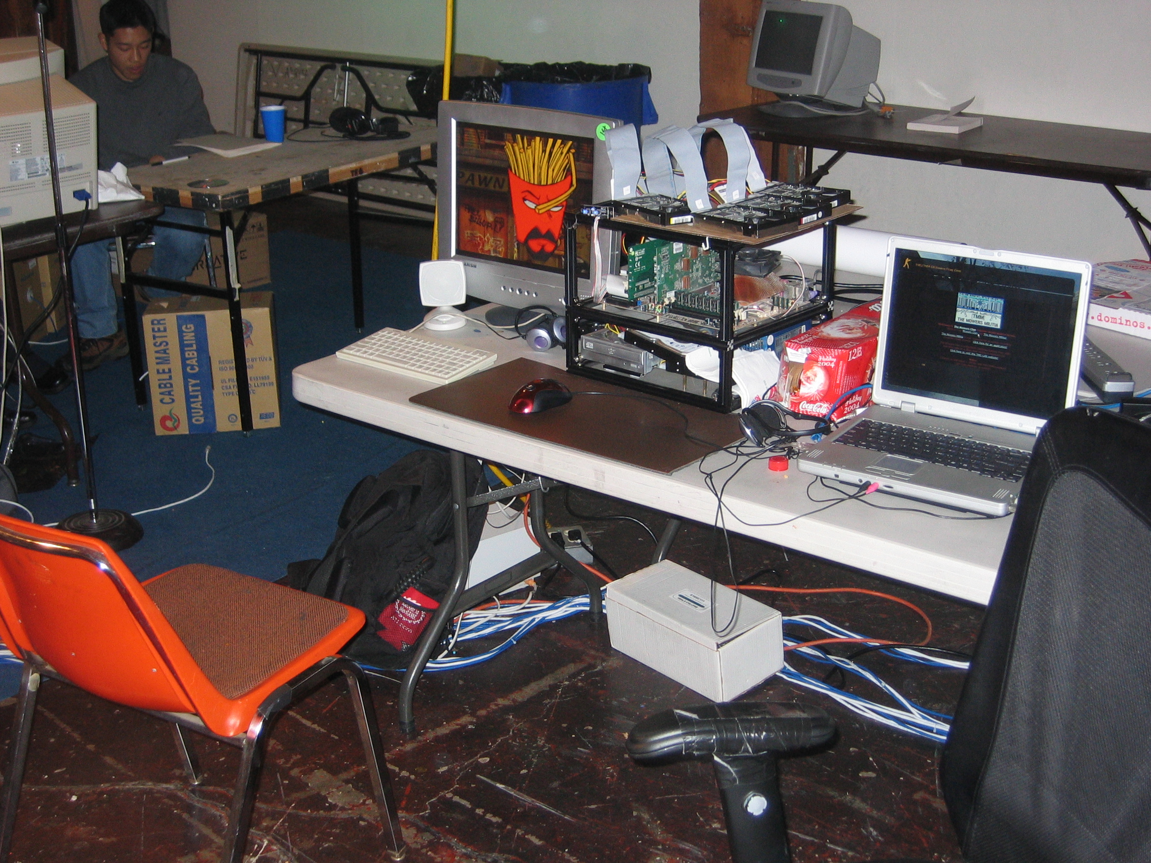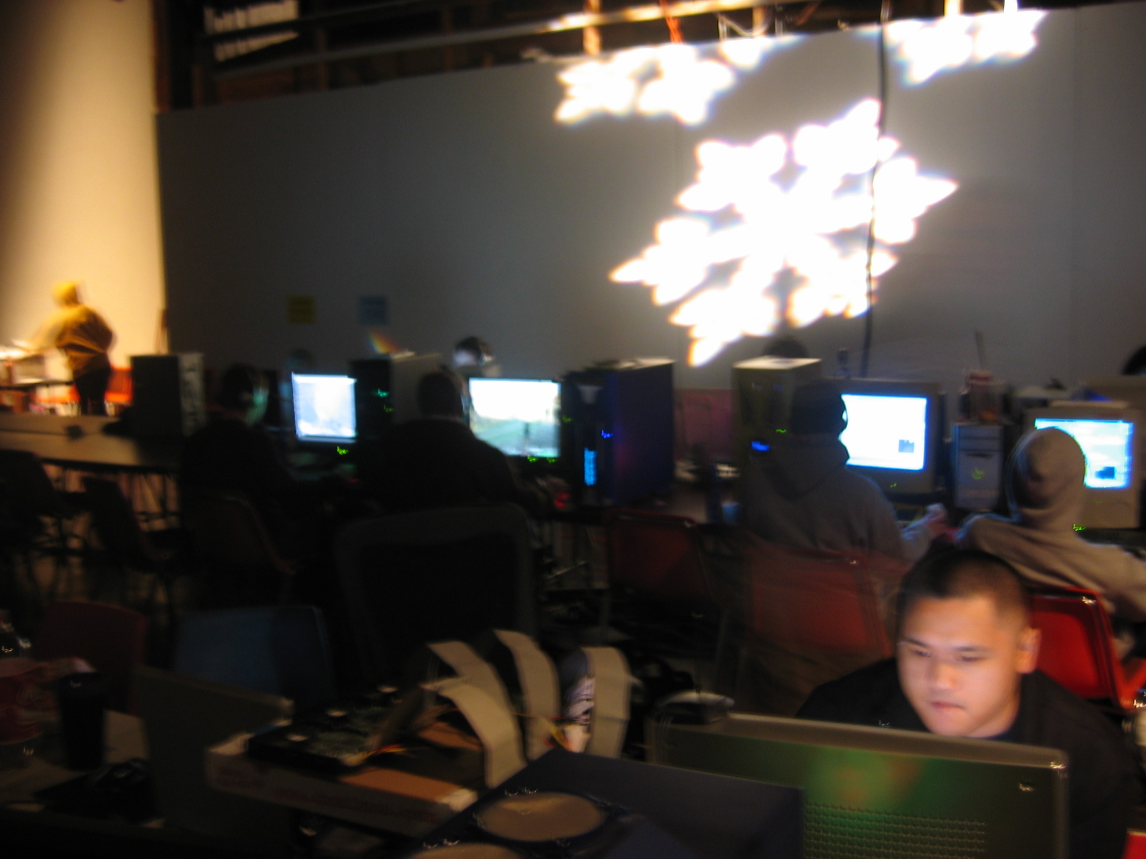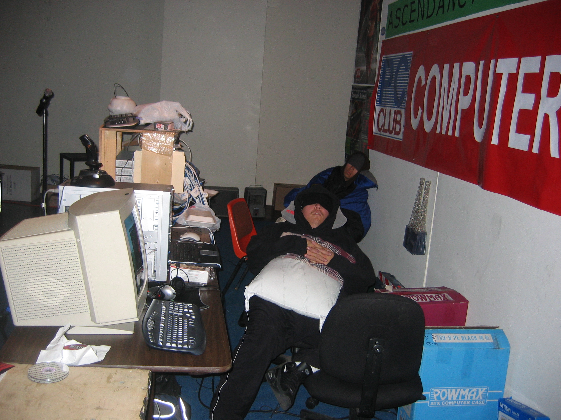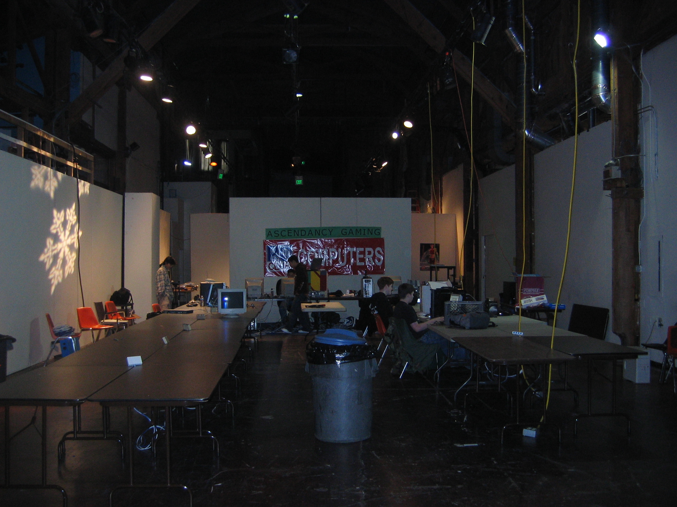 Ginger told us that he had met Gatekeeper at the World Cyber Games event in SF. Apparently during the course of their conversation Gatekeeper mentioned TMC and LAN parties, and it just so happened that Ginger was in the process of putting together a LAN in SF. He told us he had a large space available around 150 feet by 40 feet, complete with a stage at one end. He also mentioned that he was trying to get permission from the venue to play paintball in another area of the building. The organization that he was forming to host these events was called Ascendancy Gaming (AG LAN for short).
