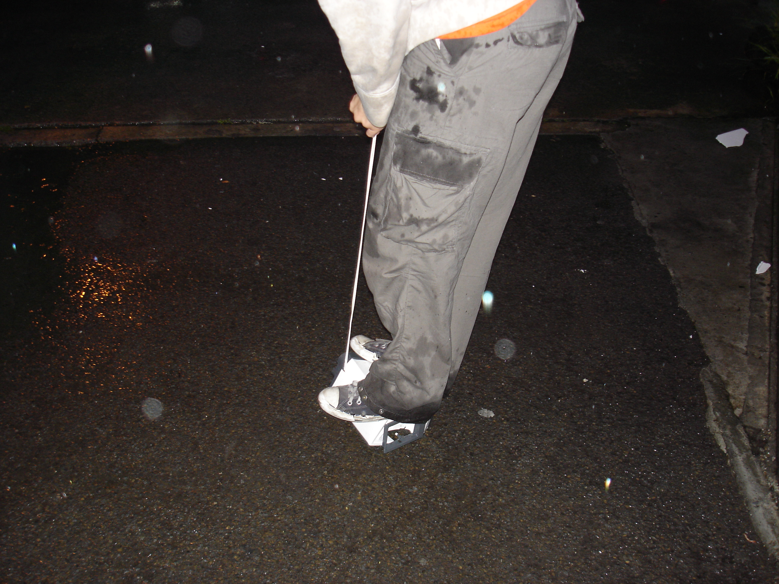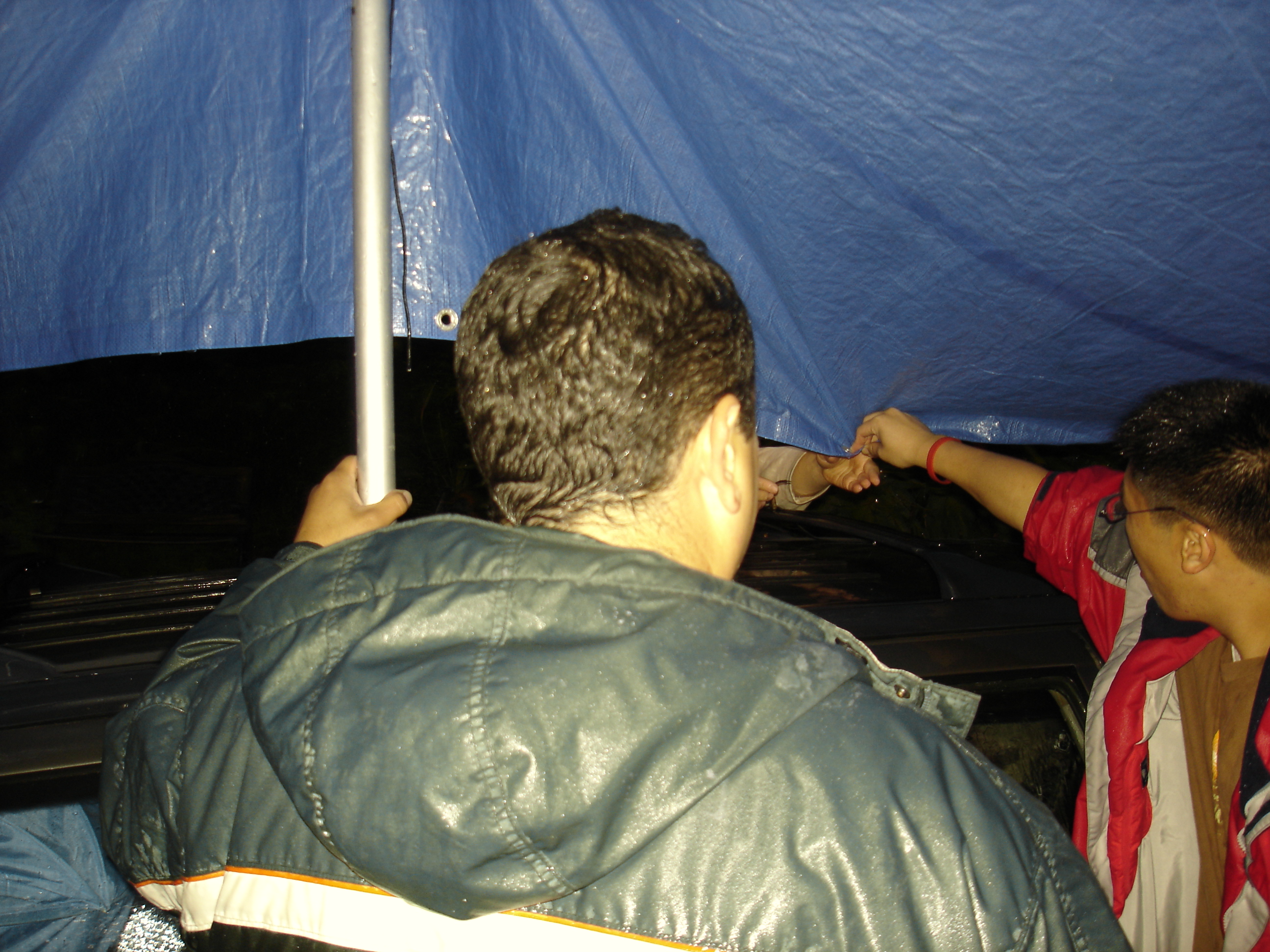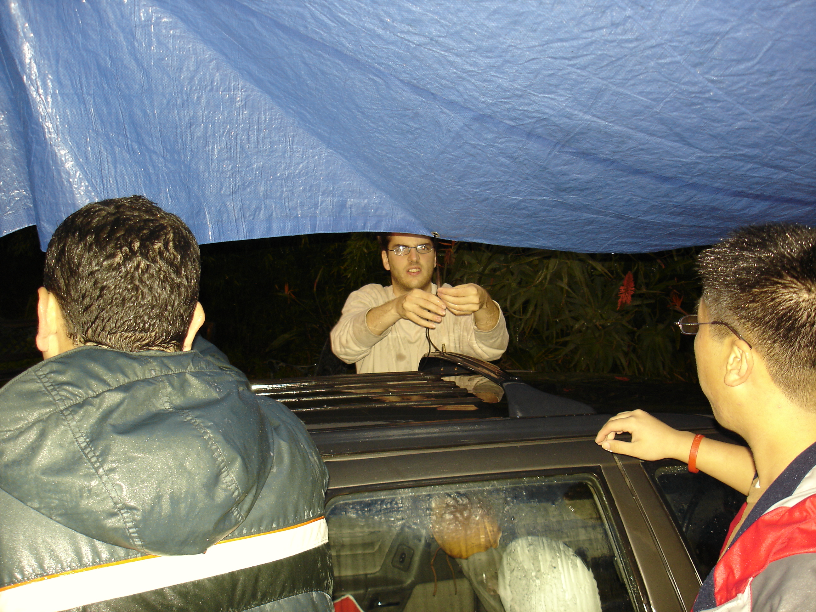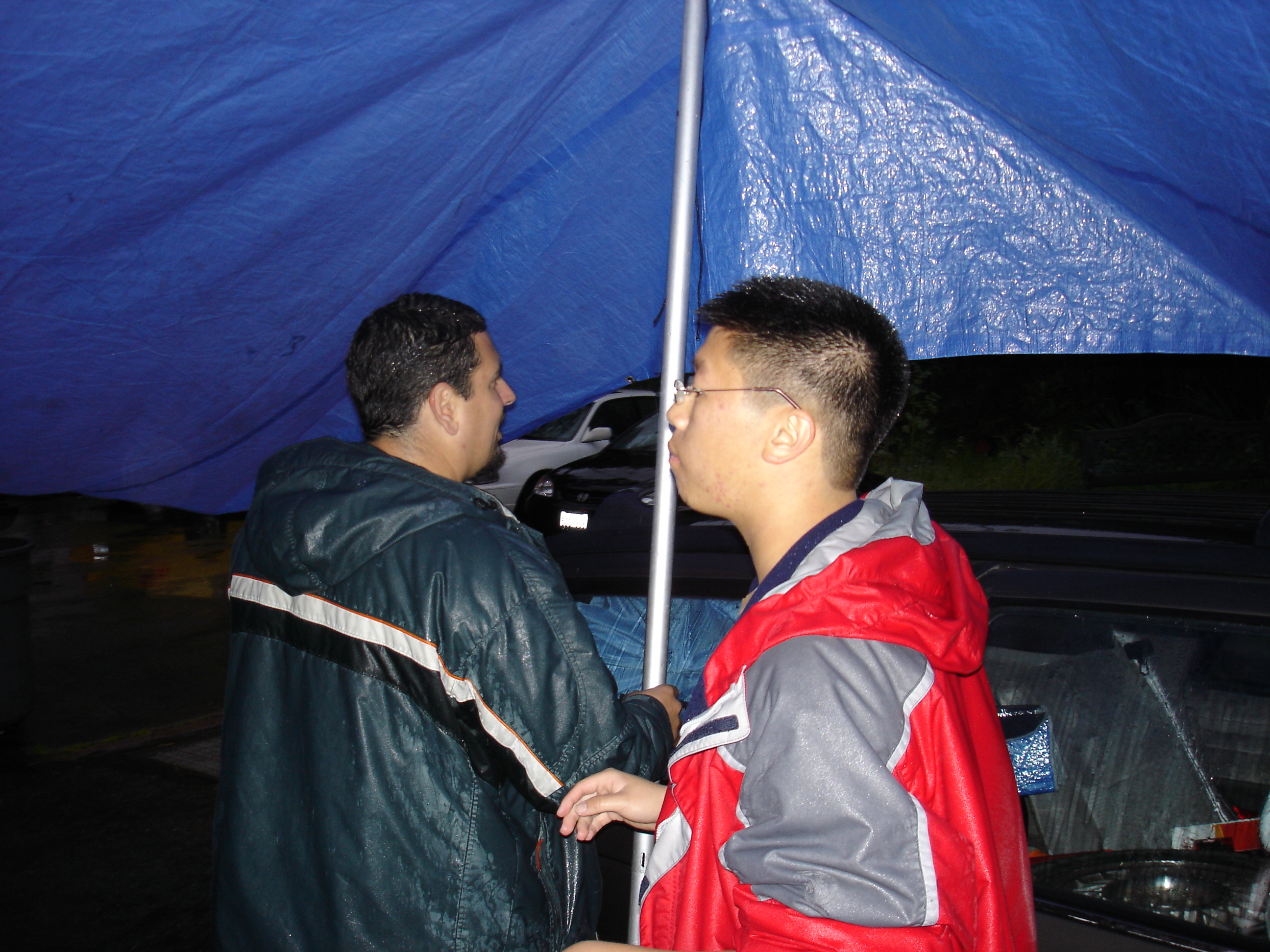 It was windy and rainy, and Ginger was attempting to BBQ outside. A makeshift shelter was rigged up using the Krazmobile as one of the anchor points. Eventually the wind blew it down on top of the Krazmobile. This one also did not feature any paintball craziness.