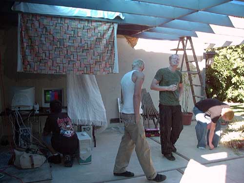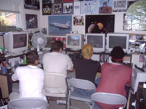 This may have been one of the more poorly thought out LANs we did. Since the weather was nice we thought it would be a good idea to have part of the LAN be on the backyard patio. This way we could grill and hangout while we gamed. Seemed like a great idea on paper, but we failed to realize the effect of sunlight glare on the screens. So, we had to hang a bunch of blankets from the patio overhang to block the sun. We also failed to consider how cold it would get out there once the sun went down. Needless to say, we didn't do this particular configuration again.