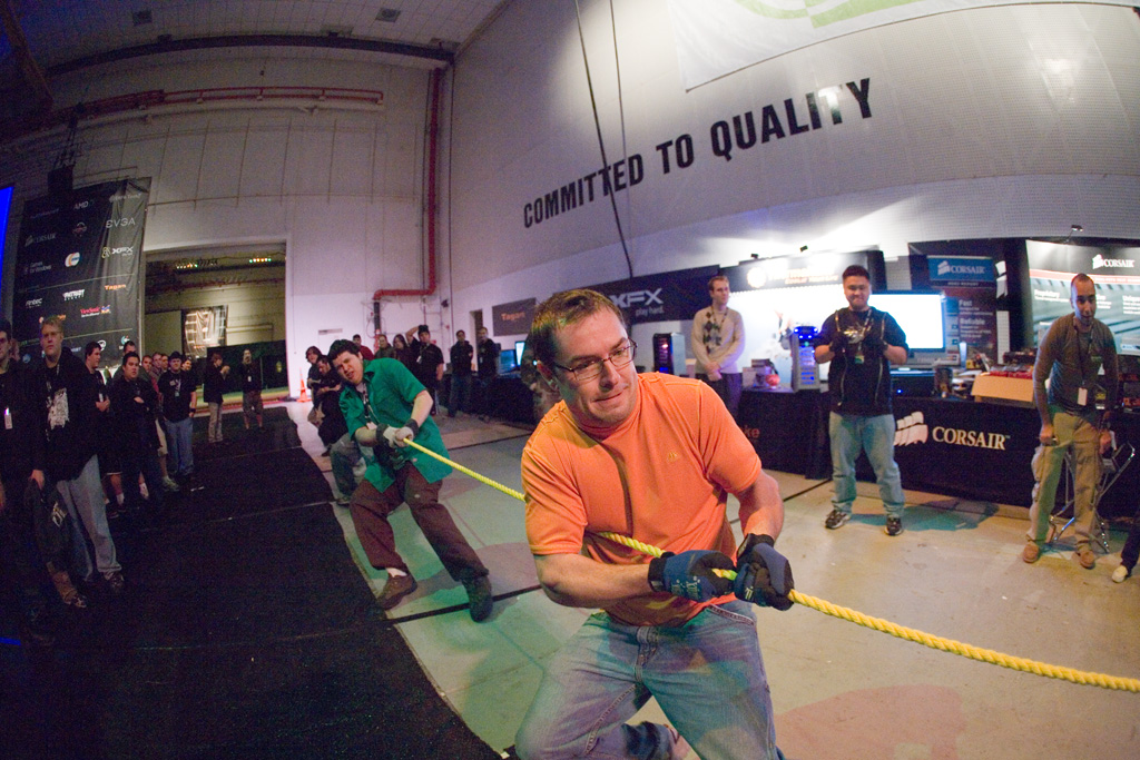 There was a massive dodgeball game outside as well as a tug-o-war contest. TMC came prepared with a team to compete in the Tug-o-war, as we had discussed strategy and team selection on our forums beforehand. When TMC showed up with our team, which consisted of many large and burly men, we were disappointed to find out there were no other organized teams. Instead there was just a rag tag group of randoms that also wanted to do tug-o-war, but no one was willing to form up against the imposing TMC team. The contest organizers eventually decided to mix everyone up and randomize the teams to make it fair. While it didn’t go exactly as planned, the winning team was still made up primarily of TMC members.