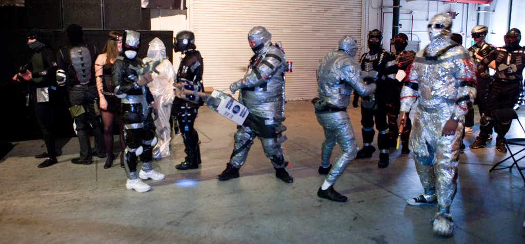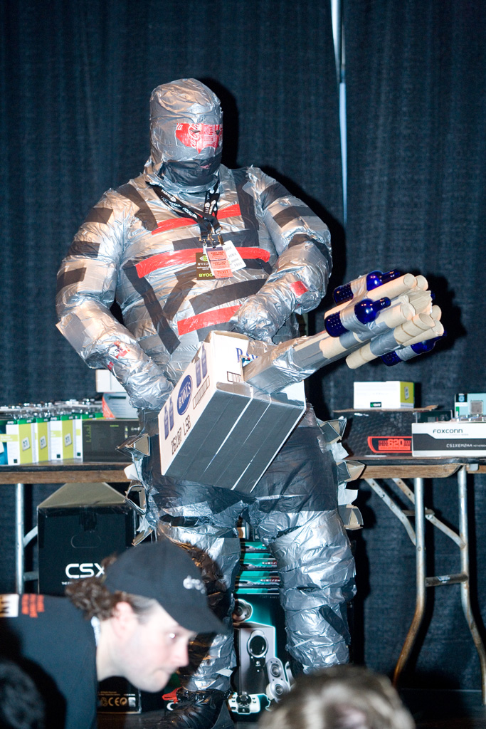 The last contest tied into the Crysis launch, and involved making a homemade “nanosuit”; the futuristic body armor worn by the main character in the game. A dozen or so contestants cobbled together their own hastily created nanosuits out of whatever was readily available. Many featured bike helmets and various sporting equipment, while others featured cardboard and copious amounts of duct tape.