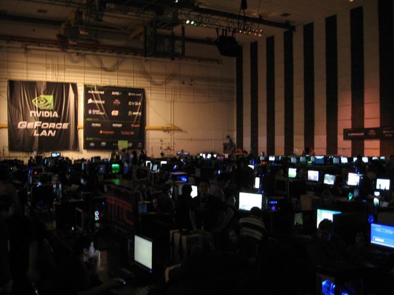 GeForce LAN 4 was set for November 16th - 18th 2007 and would take place inside a giant warehouse in Alameda near where the USS Hornet is docked. The event would host a total of 421 gamers and featured a variety of contests, tournaments, presentations; living up to the great reputation that previous GeForce LANs were known for. The event itself was divident into two main areas. The first huge room houses the BYOC area, the sponsor tables and the tournament area. The second huge room featured a mainstage stage for events and contests, a special "club SLI" area, a giant XFX bus, an area for serving food and some other sections where professional overclockers and such would do demonstrations.