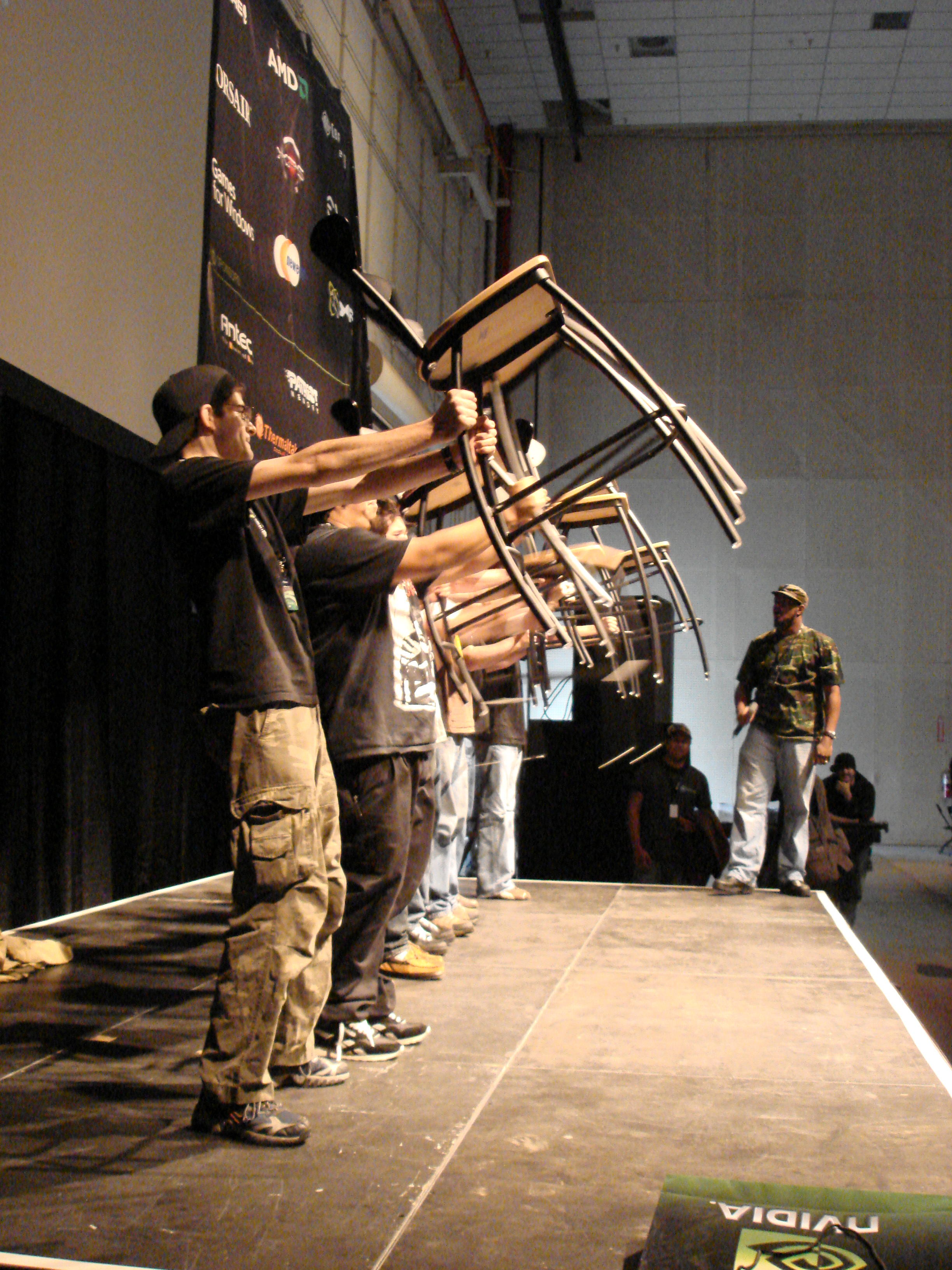 We were starting to get tired and there seemed to be no end in sight to this stalemate. It was then that the Antec booth announced it was going to start it’s prize raffle and you must be present to win. 12inch nick’s friend Mofo, who was on my team started to get antsy. He started looking at me and I think he even asked at one point if he could quit the tournament and go to the raffle. As more of a test than anything else I said something like “do whatever you want.” It was admittedly not the most stellar move in team leadership on my part. I should have yelled at him to shut up and keep playing, but instead I held onto the hope that he would choose to sacrifice the potential of winning prizes to instead support his fellow TMC comrades in their fight for tournament dominance. As it turned out, the lure of free prizes proved to be too much; he bolted out of his seat and headed for the raffle. Needless to say, my Blue team lost, and also Mofo would not be in TMC much longer.