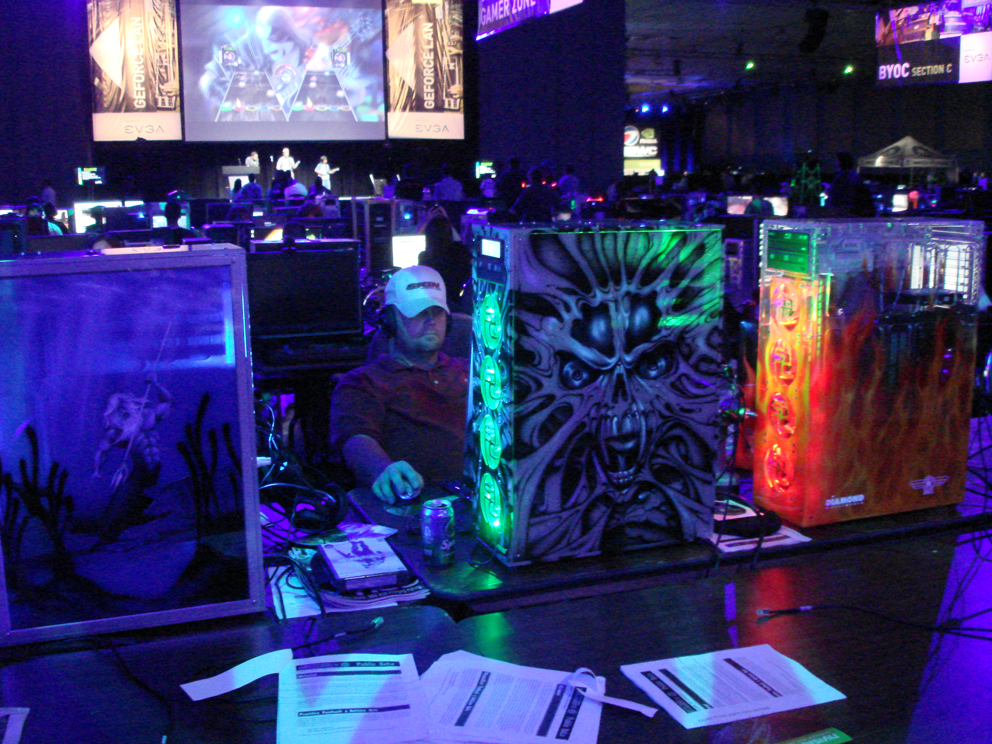 We rallied the troops, and organized everyone to register and reserve seats along designated tables in the PMS area. A bit of a wrench was thrown into this when Nvidia announced that as part of the LAN they would be trying to set a Guinness World Record (GWR) for most people gaming together over a 72 hour period. Anyone that wanted to be a part of the record had to sit in a special world record area so that representatives from Guinness could observe them and ensure they were actually playing the entire 72 hours and not sleeping.