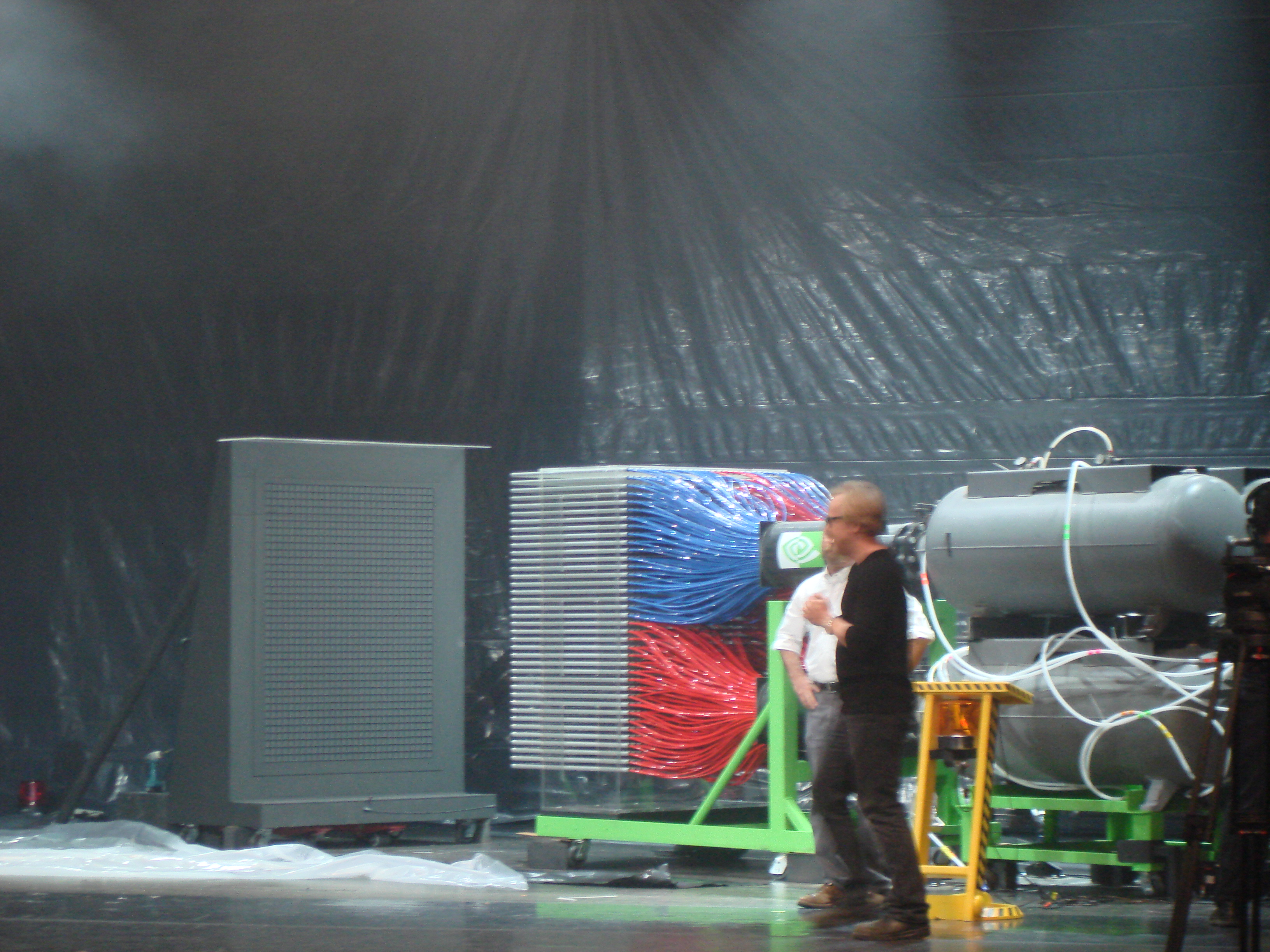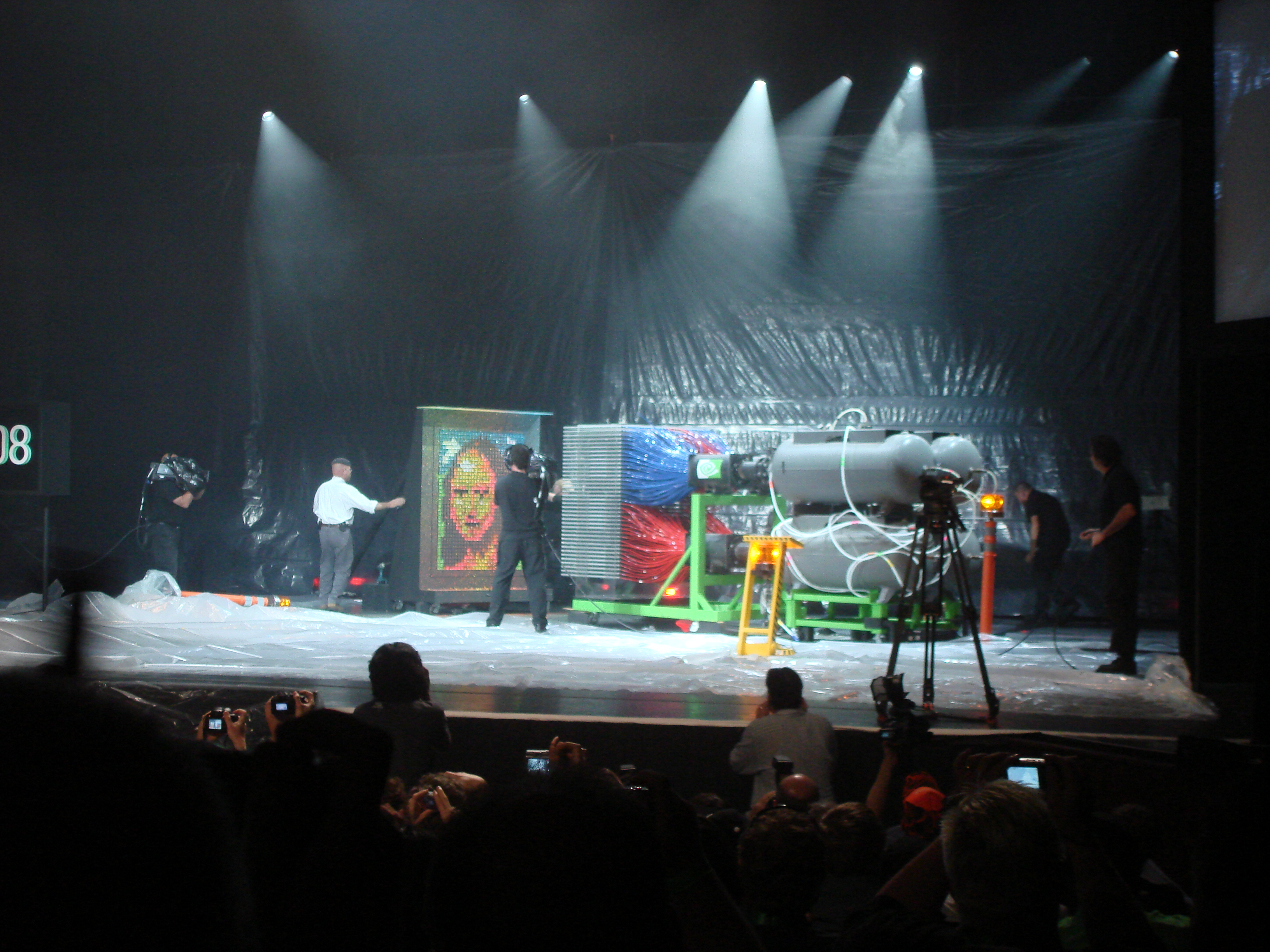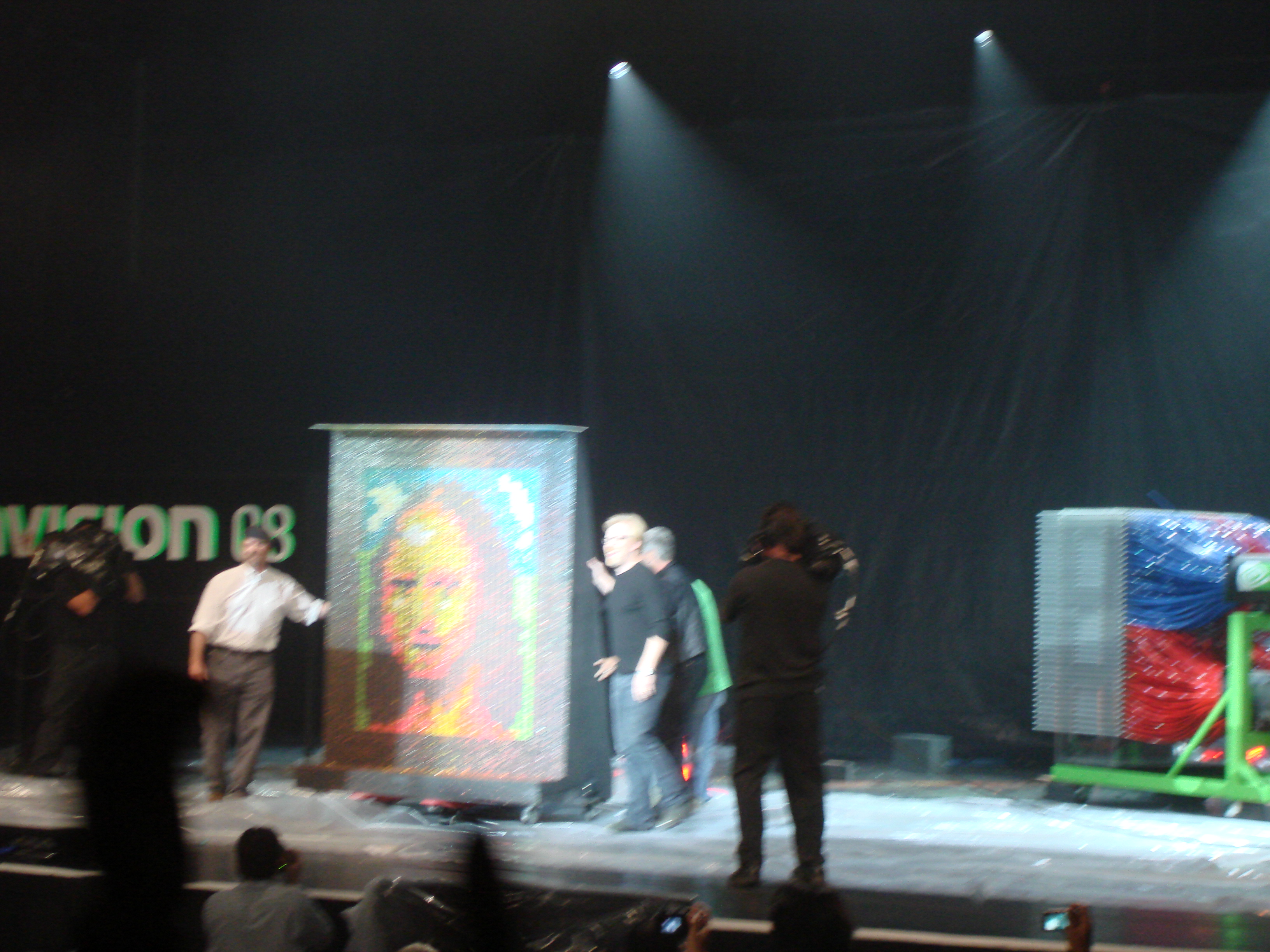 In the nearby San Jose Center for the Performing Arts there was a stage show by none other than the Mythbusters. Part of their stage show included demonstrating a monstrous 1100 barrel paintball machine that created a “painting” of the Mona Lisa in a single simultaneous shot of all barrels at once. It was quite entertaining and only tenuously linked to anything to do with Nvidia. Apparently they were attempting to illustrate the parallel processing abilities of Nvidia GPU’s (or something).