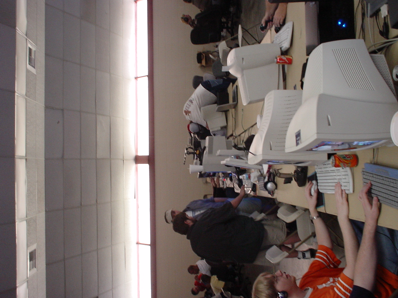 The LAN was an interesting and fun combination of familiar faces, new faces, and people I hadn’t seen since last year. Although there were no tournaments or anything, there were plenty of people in the few popular games that were played. As the LAN went on, you could see that the people who stayed up all night were fading fast. Toward the end, most people looked like zombies. Around 6pm, they did the raffle drawings. They gave away a Pentium 4 Extreme Edition, a power supply, and a few mouse pads. They then announced the winners of the Tag line contest. This caught me and many others by surprise, as we hadn’t heard much about this contest. I had read briefly about it, but assumed it was something that was going on at the LAN. I guess it was our fault for not reading the details on the main page thoroughly enough, but you would think that considering they were giving away almost $3000 worth of prizes (Three P4 3.2EE’s) in that contest they would have hyped it up a little bit more. After the contests were over, lots of people (most tired from being up all night) left, including my brother and I.