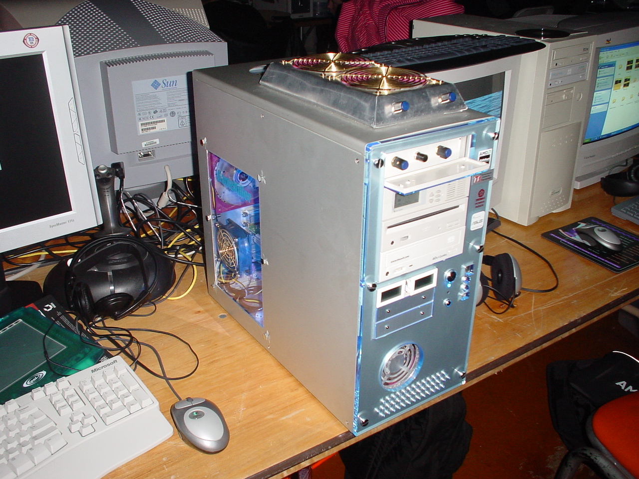 In the afternoon on the second day the raffle was started. This time not one, but TWO Pentium 4 processors were raffled off. This was totally awesome, and by far the best LAN raffle prizes I've ever seen. Unfortunately it wasn't as awesome as it could have been, because like at 001, I didn't win jack. Gamekiller was lucky enough to win one of the ultra fantastic "Shred Proof", "Ultimate in Optical Mousepad Technology" mousepad that is LITEPADS. Gamekiller also won the case mod contest, thanks to his l33t computer modding skills. Jen won a nice t-shirt from the drink sponsor XTZ. Even though I didn't win anything, I was just happy that Jen won a t-shirt instead of another processor.