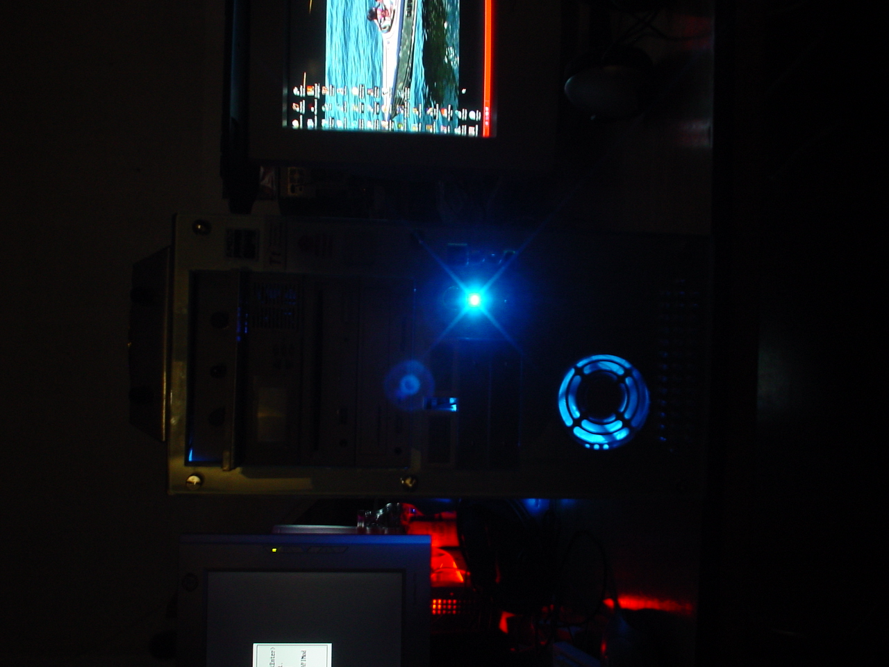 Early on, us bay area lanners got into a game of BF 1942 which had the new Desert Combat Mod installed. This was the first time any of us had played this mod. It is still in alpha stage, so it still has more bugs in it than a hobo's bedroll. The idea behind it, which is converting BF 1942 to a modern battlefield, is a great one. Once the bugs get worked out this mod will be wicked cool. Unfortunately, we could not get more than 7 or 8 people into the BF server, which is not enough to have a decent game. A disturbing trend that was carried over from LS 001 was that 90% of the gamers there are completely obsessed with CS. A lot of people at the LAN intended to play other games besides CS, but they all ended up getting sucked into the swirling vortex of CS.