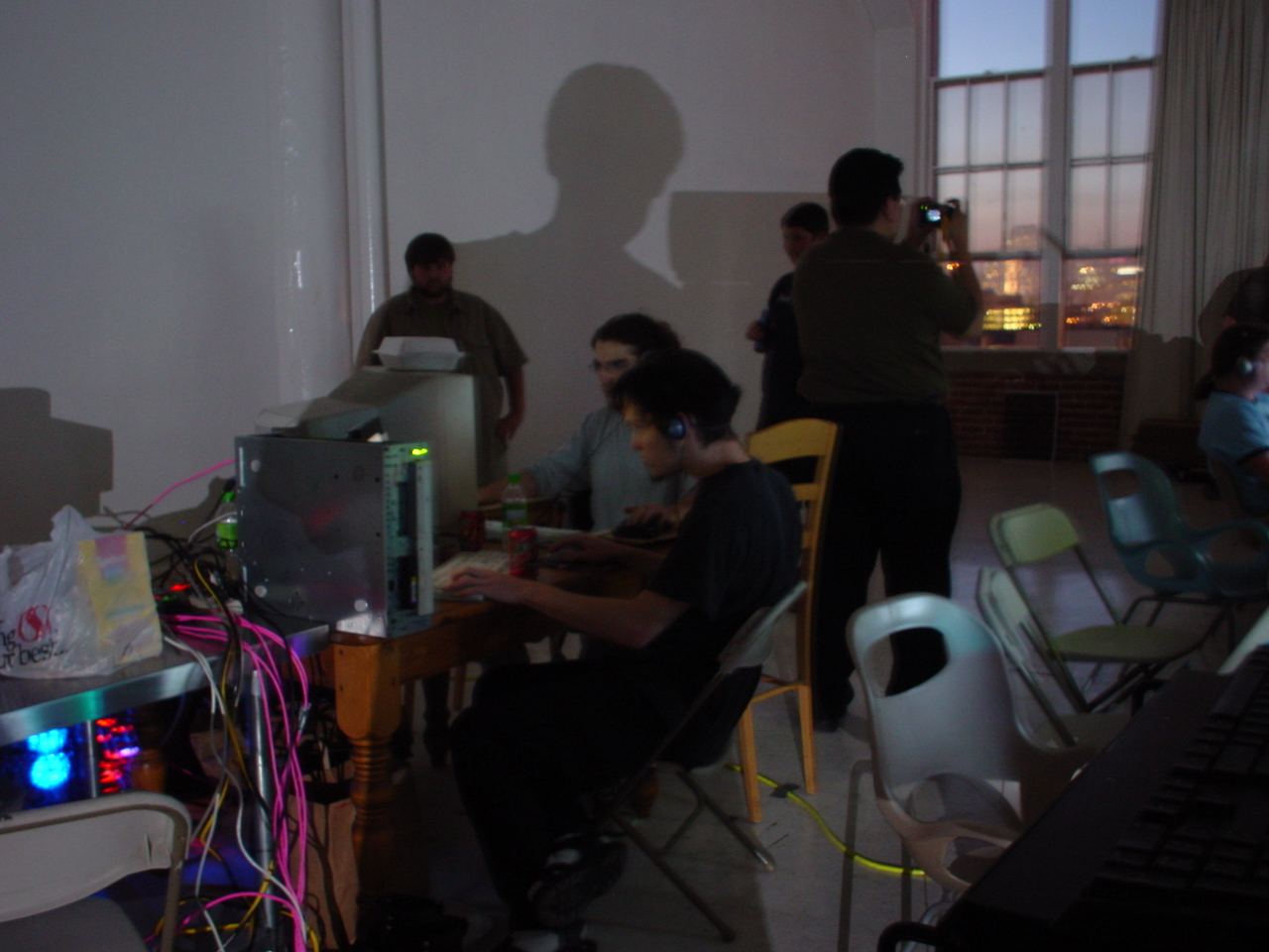 We proceeded to LAN the rest of the day, and the location proved to provide an excellent view of the city lights at night. This was when many of us were first introduced to the game Vietcong, which would become a popular game among us for LANs to come. This was also another game that Zer got ahold of, and with no prior experience playing it, proceeded to kick everyone's ass at it. I also discovered that he had a very bizarre method of re-mapping his keys, and instead of the standard WASD he had some strange keyboard layout that he scientifically devised as being the most efficient possible. It was definitely too mind boggling for me, but it seemed to work well for him.