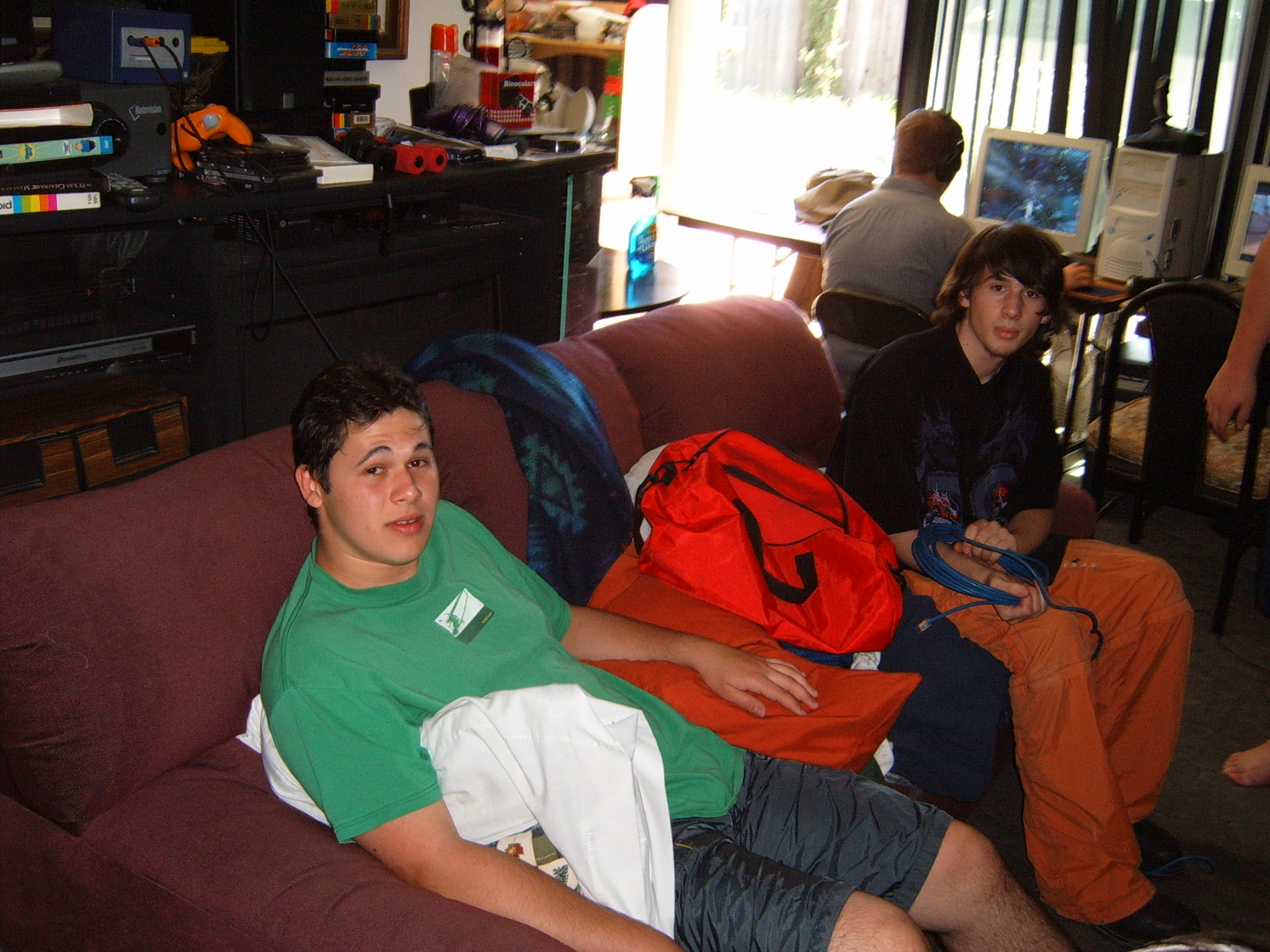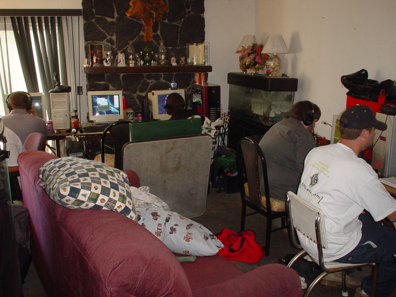 Apparently there was a “pre-party” that I missed out on, but by all accounts, it was pretty wild. When I arrived things had pretty much settled down, from the night before. People were lounging around, leeching files, and playing games… in a leisurely manner. Kraz was outside, “modding” his car, which seemed like an odd thing to do at a LAN.