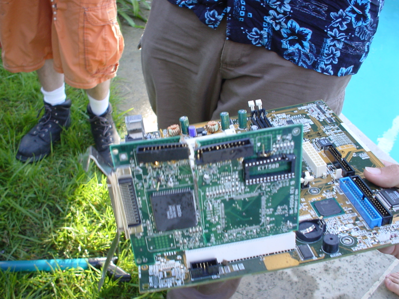 I went inside, set up my computer and, as it turned out, didn’t end up actually playing anything till a few hours later. I was fully content to engage in leisurely activities and “chill” with the guys. I went outside, and Metalslug was in the pool, and appeared to be retrieving some kind of motherboard and bits of electronic components off of the bottom of the pool. At first, I was unsure as to whether this was some kind of watercooling experiment gone awry, but then I noticed a pile of what seemed to be scrap components on a nearby chair, and that’s when I realized that shenanigans were afoot… more on that later.