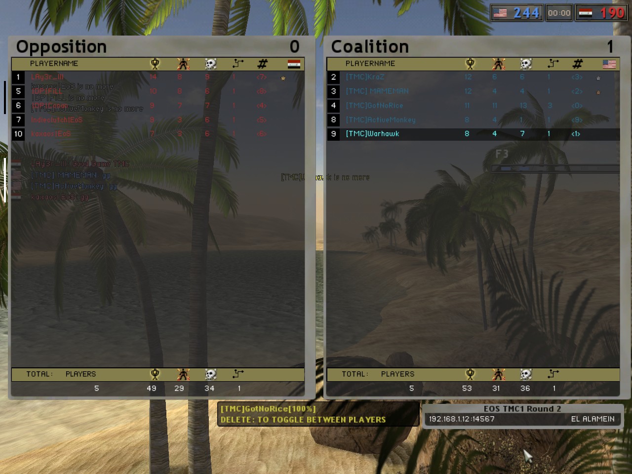 EOS was defeated by TMC in two rounds. Next, it was time for TMC1 to go