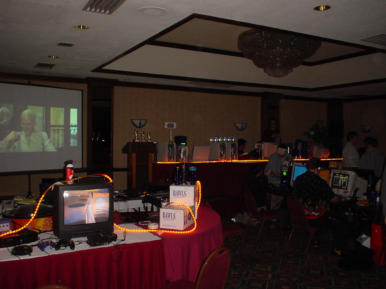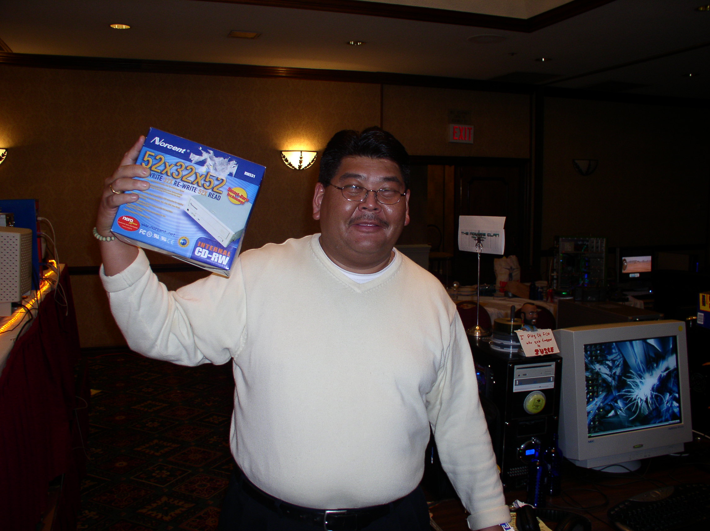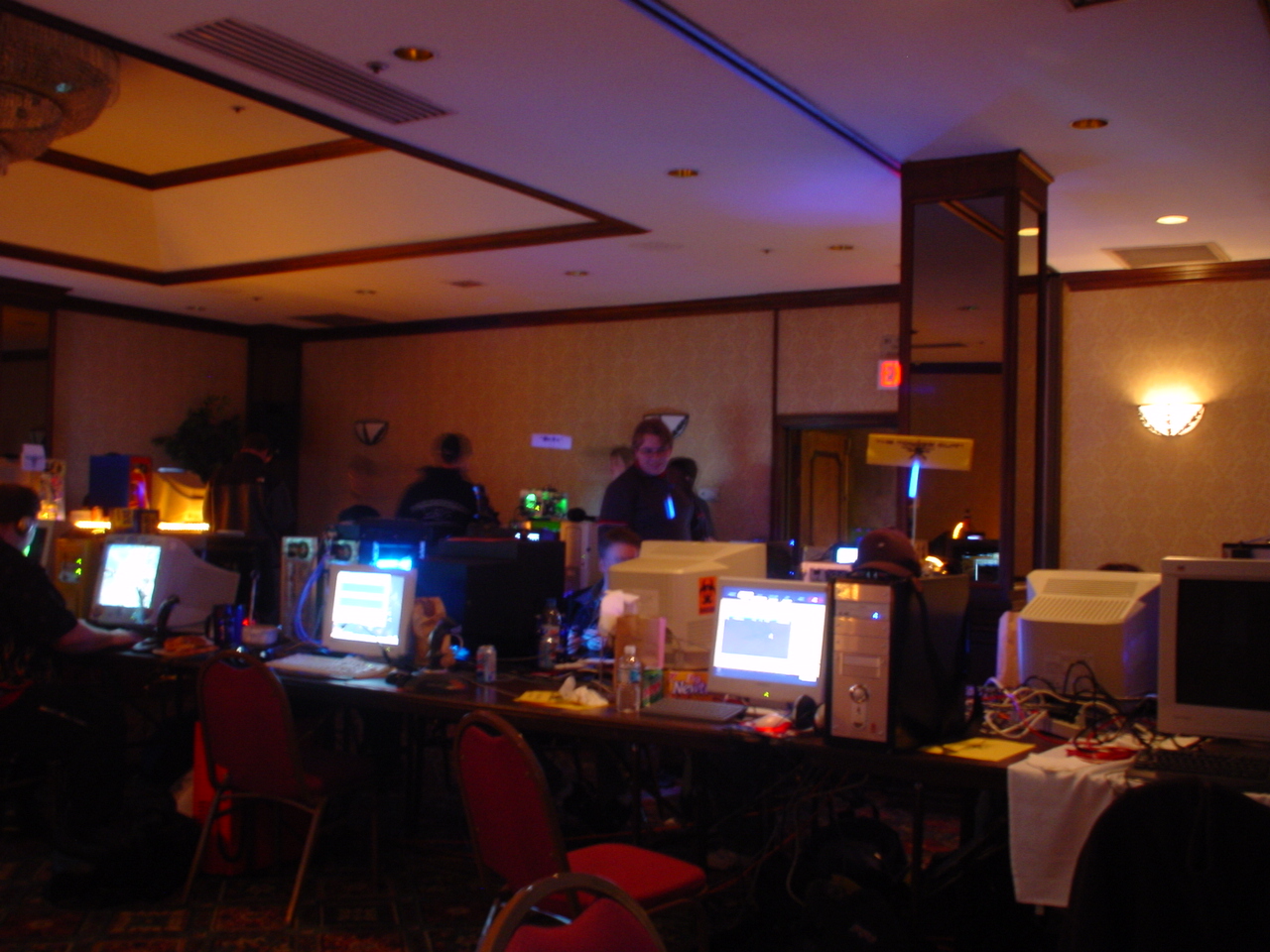 I am happy to report that MF 3 had NONE of these problems and went off without a hitch. The power never went down (with the exception of one table that accidentally plugged in everything to one outlet instead of distributing among the two outlets assigned to that table). The network ran great, and the tournaments were extremely organized and there were no disputes as in last time. There was even more stuff to raffle off so a lot of people walked away with goodies. I have uber respect and admiration for the entire monster crew. There were only three of them, but somehow they managed to make sure everything ran smoothly the whole time. Morfeus did a great job at being the MC and coordinating the events and doing the raffles and generally making sure the party moved along and nobody got bored. Wireballz and Layer_III did an amazing job at keeping the servers up and running and quickly solving all network and administrative problems. And let’s not forget about Morfeus’ wife at the check in counter who handled the payments, party favors and handouts. A great team, running a great LAN.