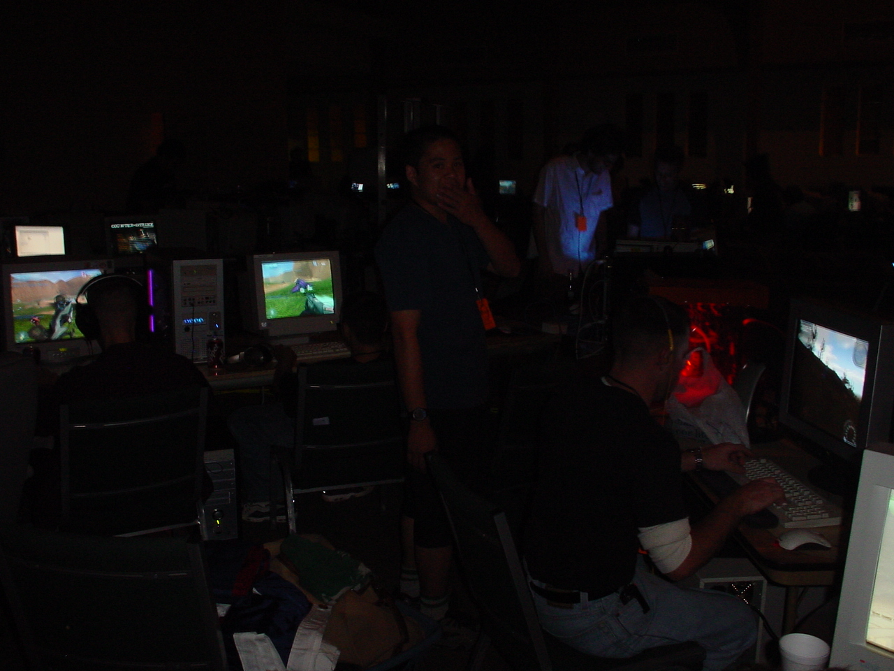 An ambitous amount of tournaments were planned for the night, but unfortunatly the technical difficulties set back the timetable quite a bit and only a small portion of the tournies were completed. It was a full night of gaming though, and the action kept on going well into the next morning. The Battlefield 1942 Tournament and the Warcraft 3 tournament were the most succesful. The BF tourney being donimated by none other than Phil and his crack team of unbeatable Battlefield fanatics.