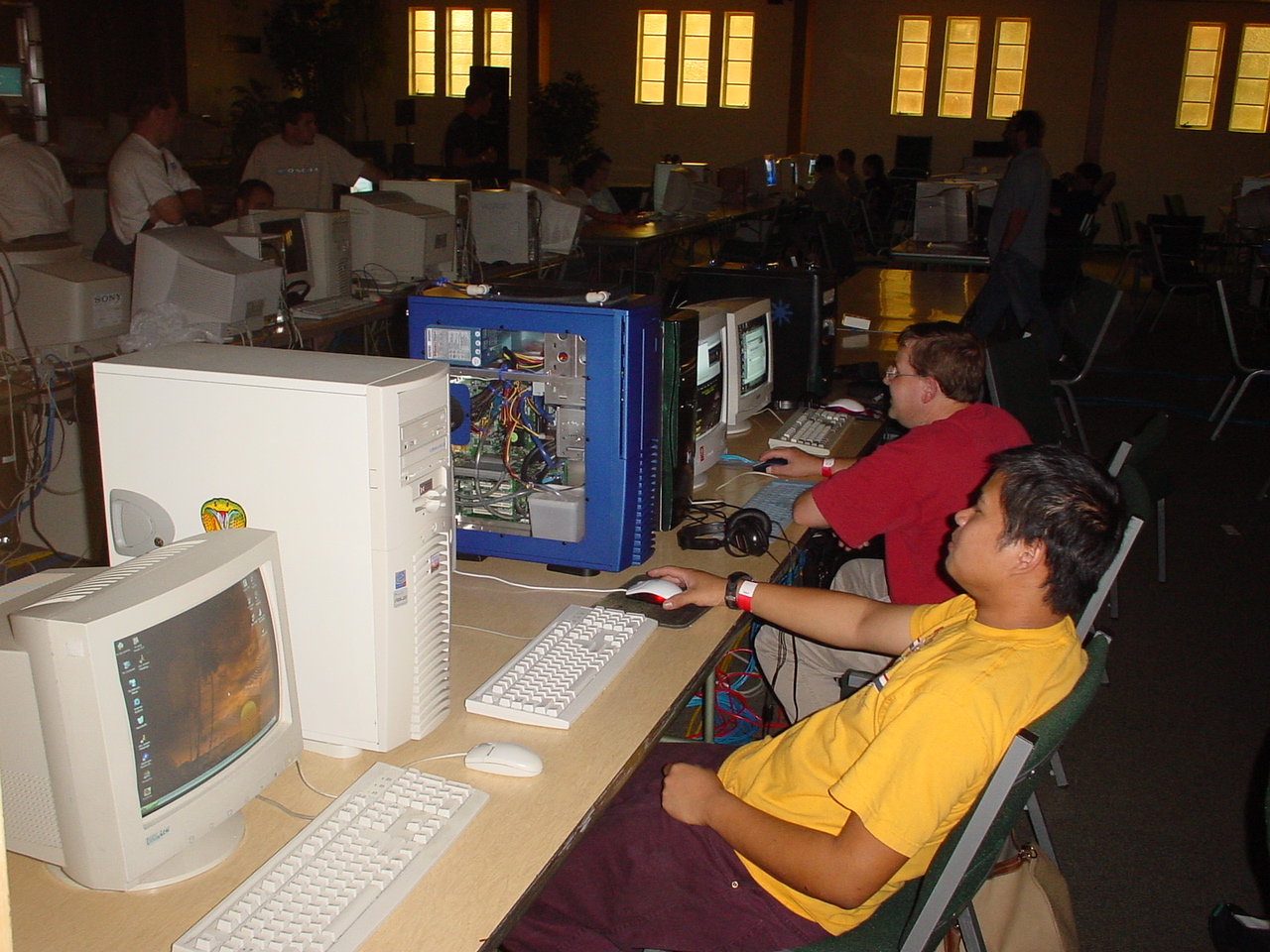 The Octane + LG LAN, last Friday night was definitely the coolest LAN I've been to. It was a collaborative effort between the LG LAN and The Octane LAN parties. It was held at Calvary Church in Los Gatos, which makes for a great venue, since the sanctuary that is used has lots of room, nice high ceilings, a good PA system, and even Internet access. Although there were a few hitches at first with the net access going down, everything got ironed out after an hour or so.