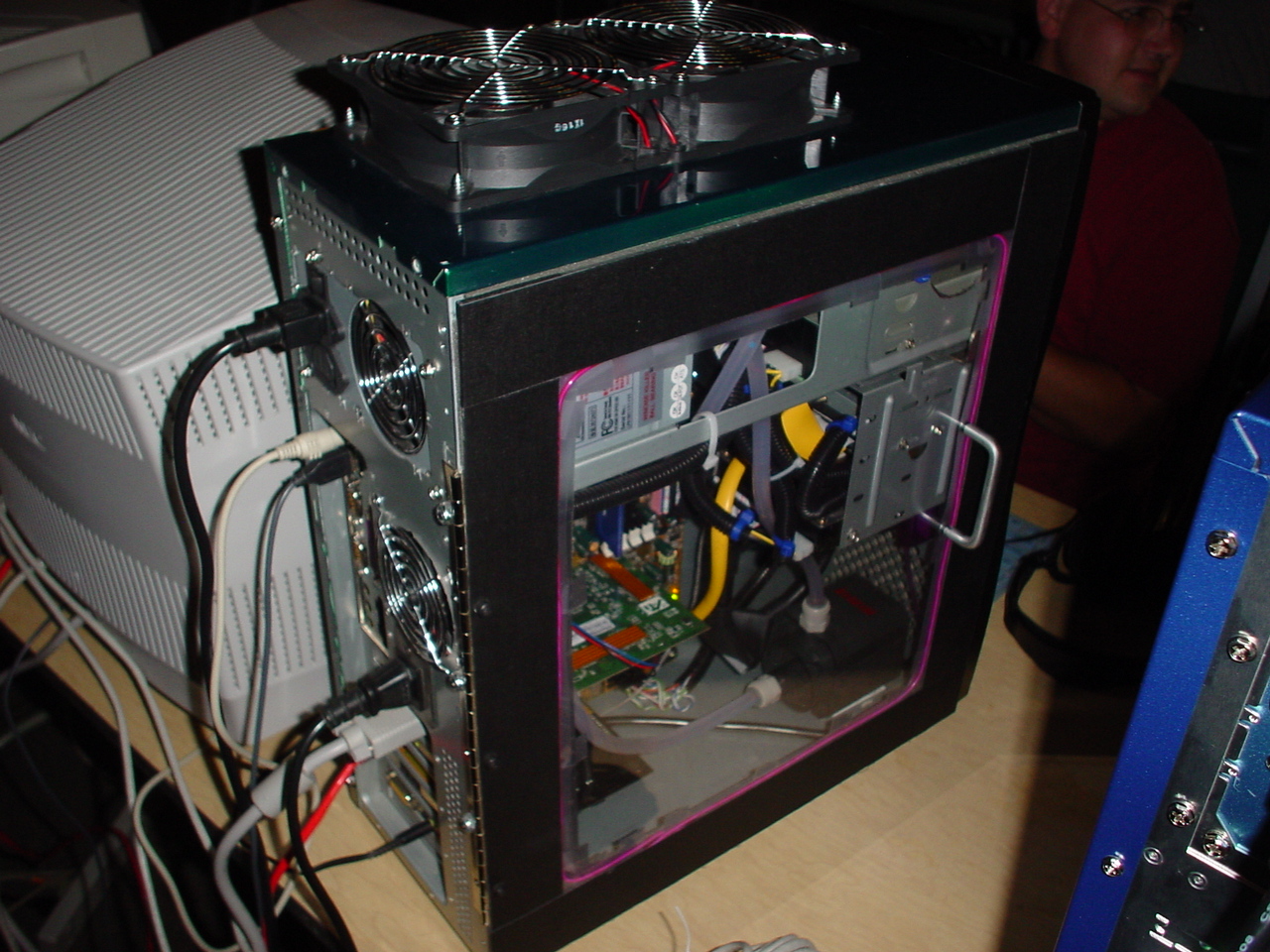 QueMine, Raven and I were in attendance, representing the Mowers Clan. We set up our rigs on one table and began fragging. QueMine and Raven's pimped out water-cooled rigs got a bit of attention from some of the other party goers and there were more than a few pics taken of their rigs. The primary games that were played were Medal of Honor, Jedi Knight 2 and Counterstrike. While we didn't do so well at CS, our clan members were always in at least the top three of the Jedi Knight 2 and MOH servers. There was a free-for-all MOH tournament held, in which the person with the most frags after 30 mins of play gets a $50 gift certificate to Frys. I came away the victor of that tournament with 176 kills. The second place player had 119 and QueMine came in third with 109.