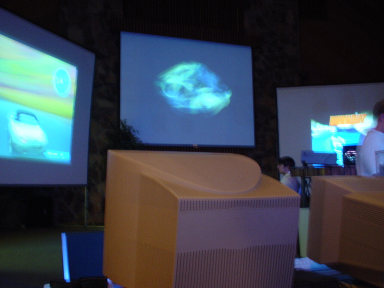 There were three large projector screens set up on the stage. Two were projecting popular console games (every console currently on the market was available for play), and the center screen was projecting visualization for the techno music that was pumping through the place. The music added a lot to the party atmosphere and at one point there was even a live DJ spinning records, which was EXTRA cool.