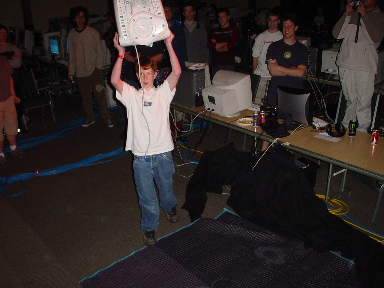 That said, this one was notable in that there was some kind of prize giveaway in which a prize was offered to anyone willing to smash their monitor. As you can see in the picture, there was a kid who took them up on the offer. Everyone watched in delight and amazement as the kid smashed his monitor on the ground.
