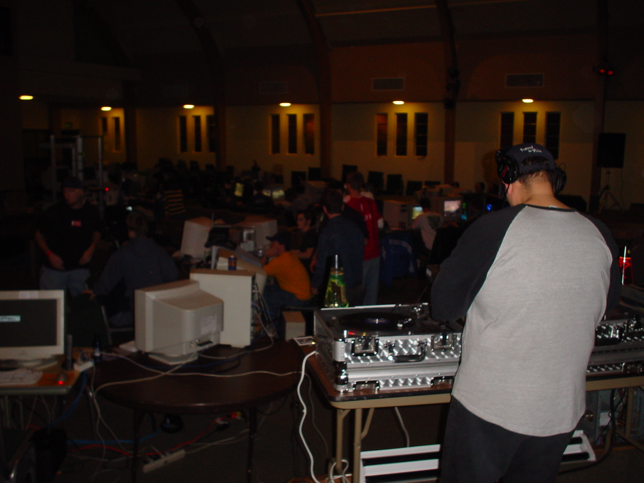 By this time I was beginning to get more involved with Octane and I wanted to help out however I could. I helped contact companies for sponsorships and got some free product and swag for giveaway. I also brought in some DJ friends I had met so they could do some live DJ mixes while the LAN went on. My friends were part of a DJ group called the Nocturnal Groove Fellowship. They went by the names DJ RockRock and DJ Django. I remember Django's mixes being my favorite and his set at this LAN was really good.
