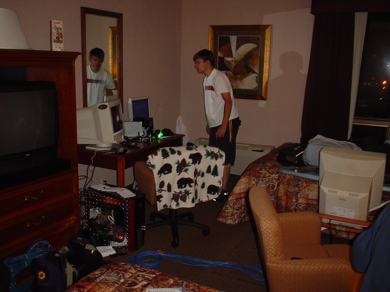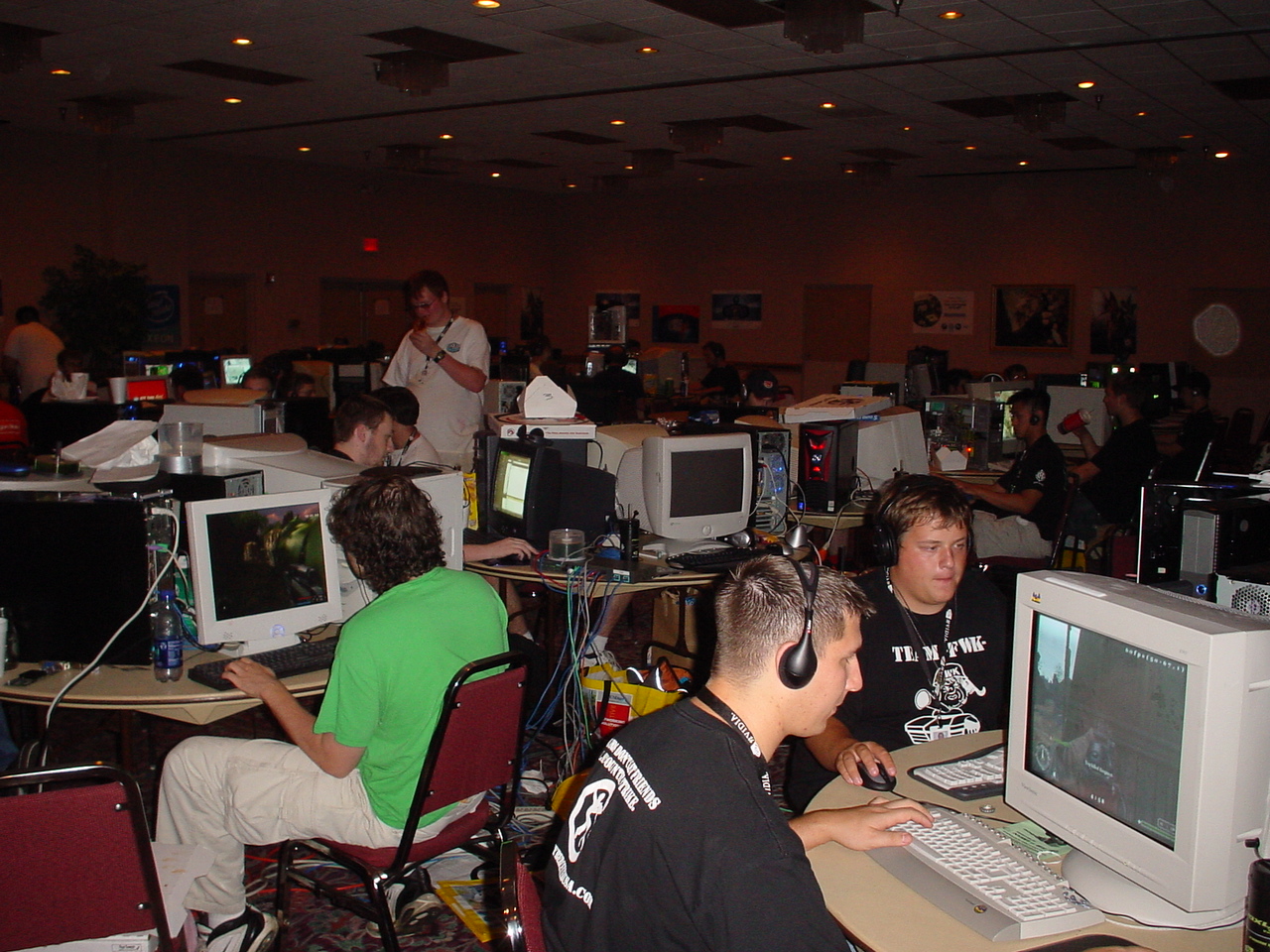 It was June 2004 and Dima posted an excited message rallying everyone to join him for a mega LAN in Oregon. He had attended a previous event and brought back tales of the biggest LAN event we had ever heard of. The next event was to take place over 4th of July weekend and time was running out to register. Not only was the cost high, but we would have to also get hotel rooms; not to mention the epic long drive to get there. It was a tough sell, but Dima was very persuasive. He convinced myself, Kraz, and Kaffine to go. I honestly have no memory of the car ride up and back (other than vague feelings that it was long and grueling). I do remember getting to the hotel and Kraz and Dima trying to setup their computers in our room. They ended up taking the hotel’s network box apart to try and hack it into either getting free internet access, or sharing the connection among multiple PC’s in the room (or maybe it was both), either way I’m sure the hotel wouldn’t have been pleased. At one point we also had a network cable running down the hall to another room.