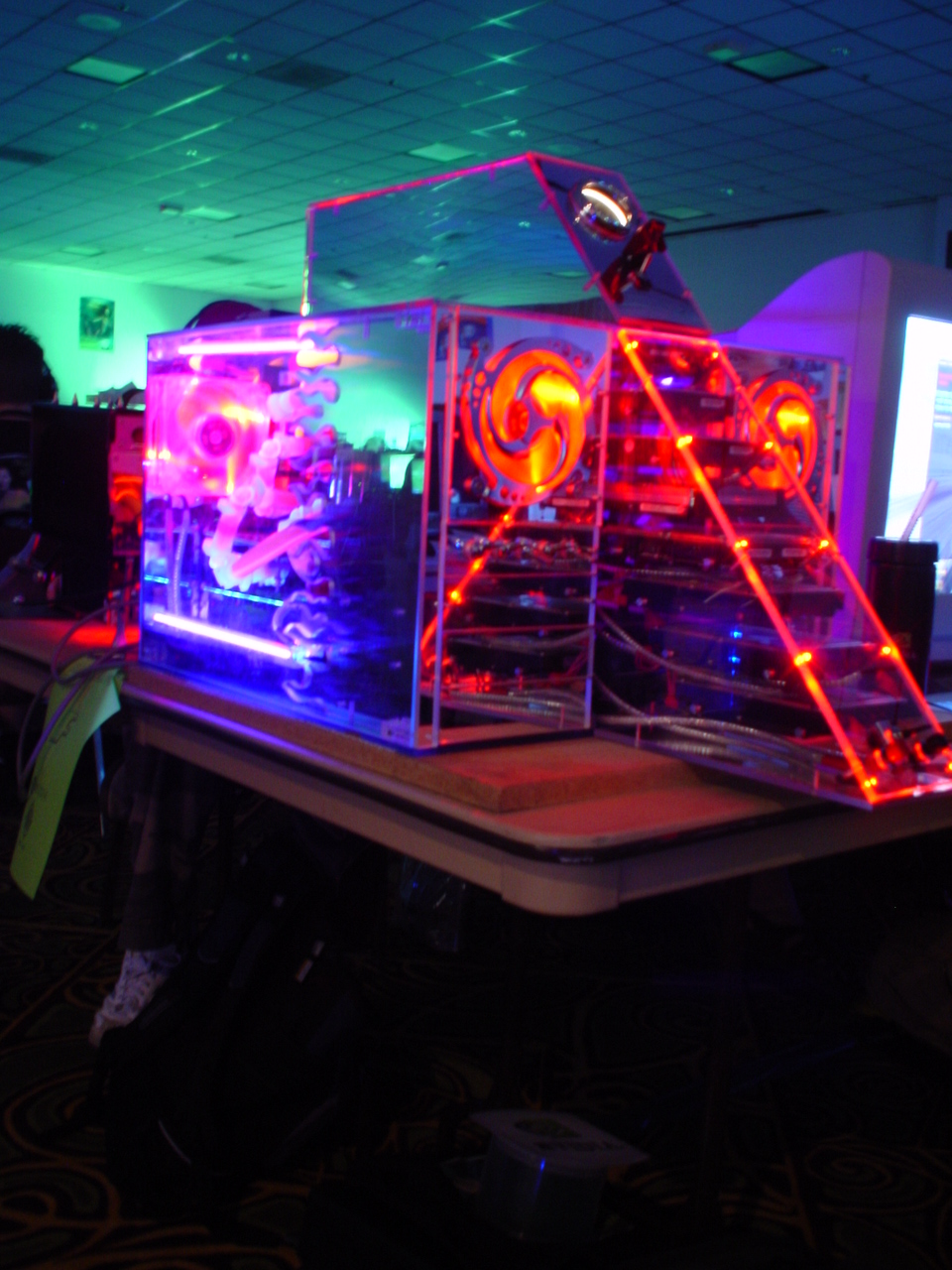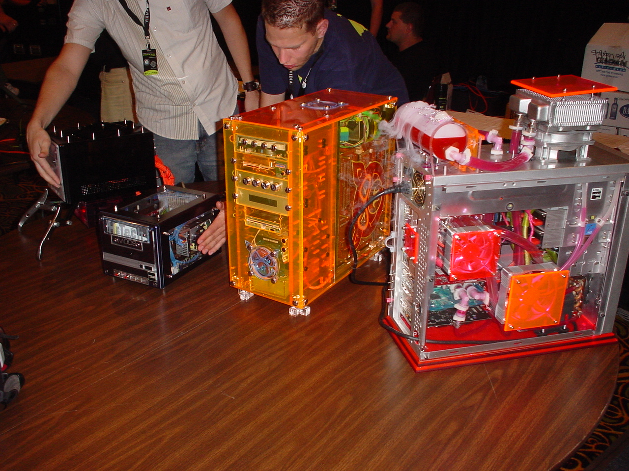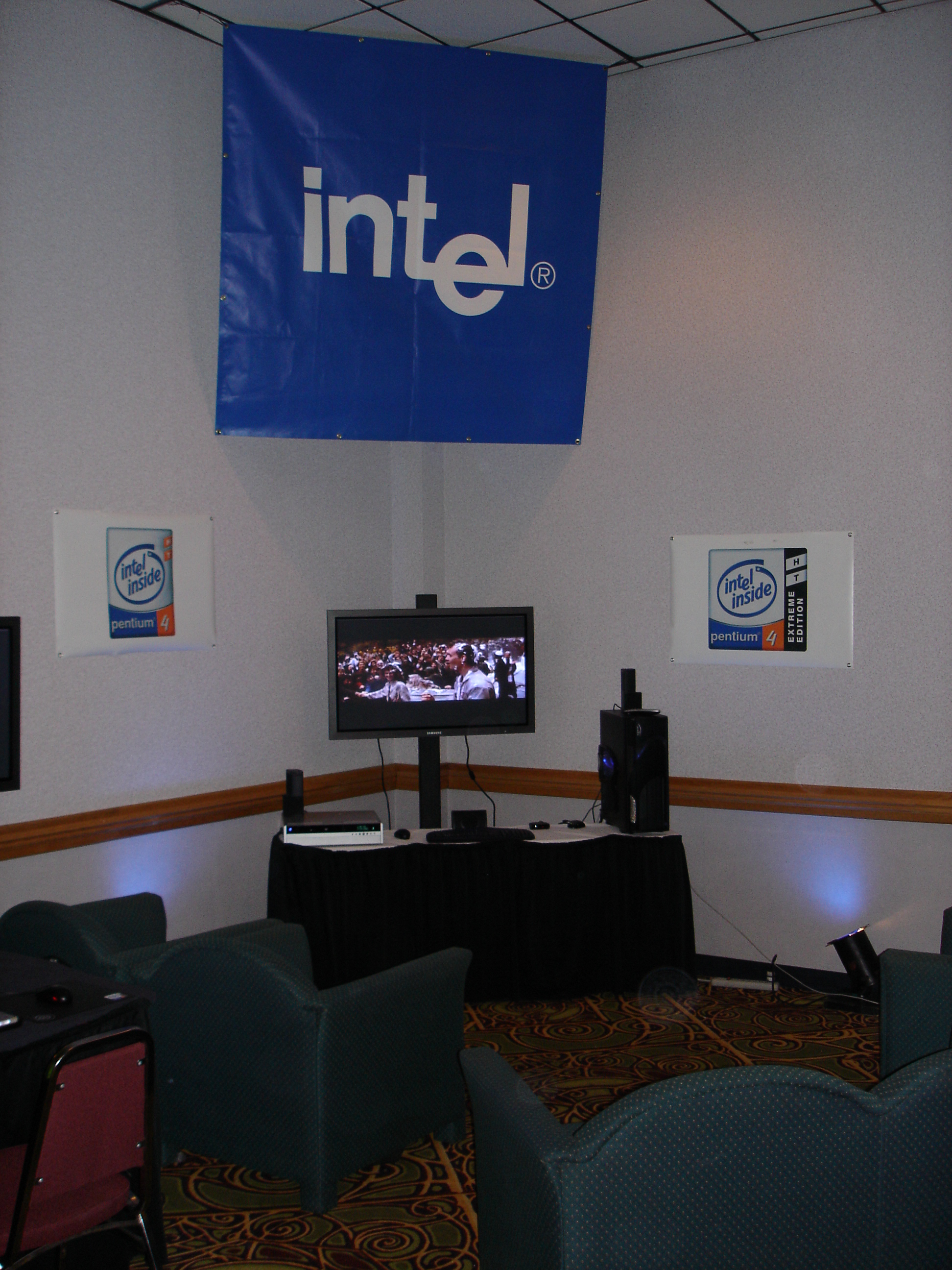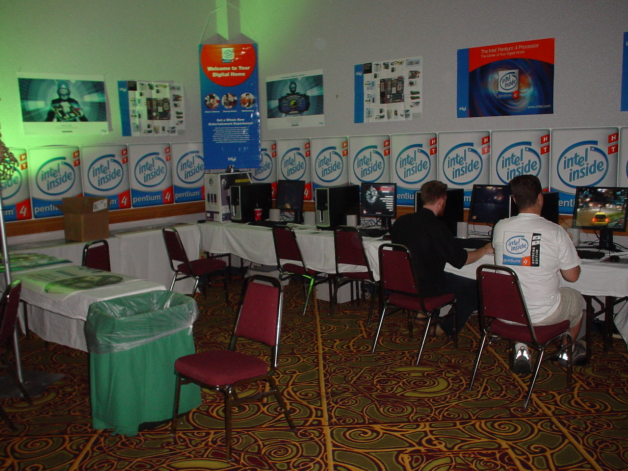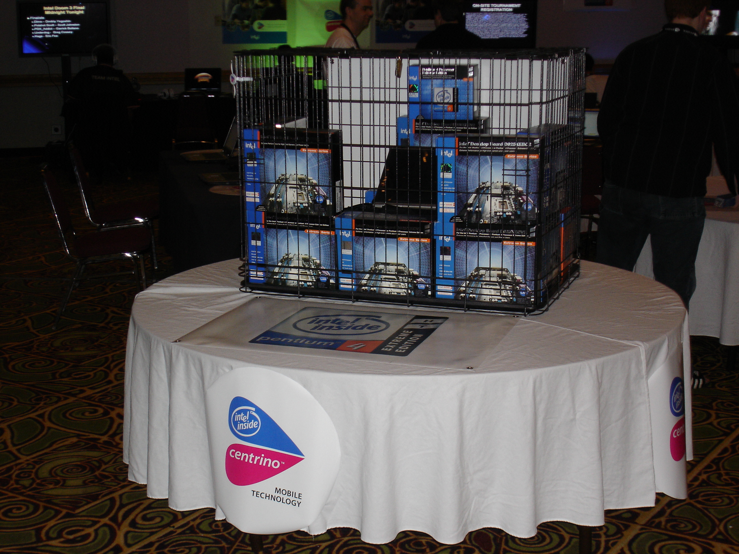 The event itself was fantastic. There were over 500 attendees and it was the biggest and best LAN any of us had ever seen. They even had unlimited free fountain drinks available. There were also tons of contests and raffles. We ended up winning tons of prizes too. The first winner I remember was Kraz who answered some really obscure tech question that was asked by one of the Intel presenters during their stage presentation. For this he won a brand new Pentium 4 Extreme edition and Motherboard. This was easily the most epic prize we had ever seen at a LAN (at the time the retail value of this was well over $1,000).