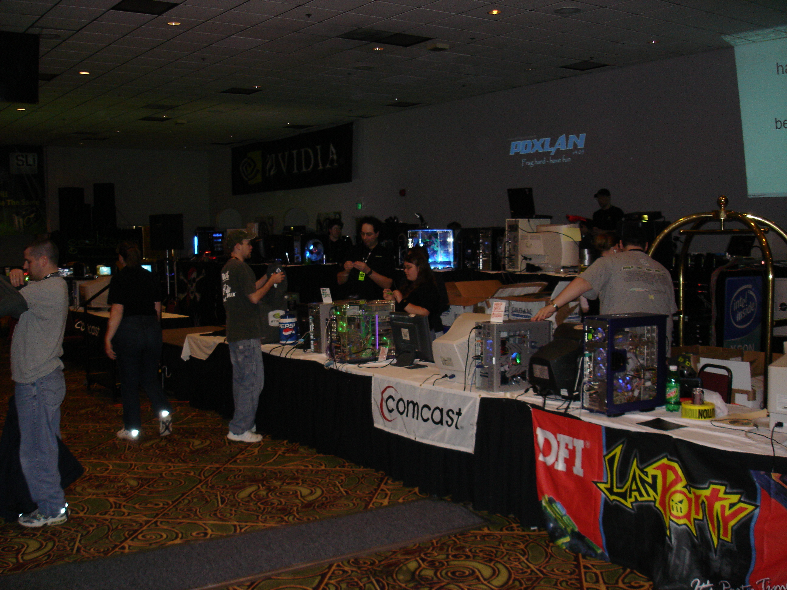 Since we registered late we were in the “annex’ portion, which was about 100 people worth of overflow seating in a completely different part of the building than the rest of the LAN was in. Periodically announcements were made about contests or raffles that were happening in the other building, and all of us annex attendees would wander over. The annex overall was never a great idea as it made us feel disconnected from the rest of the event, and I don’t think any future PDX events used it again.