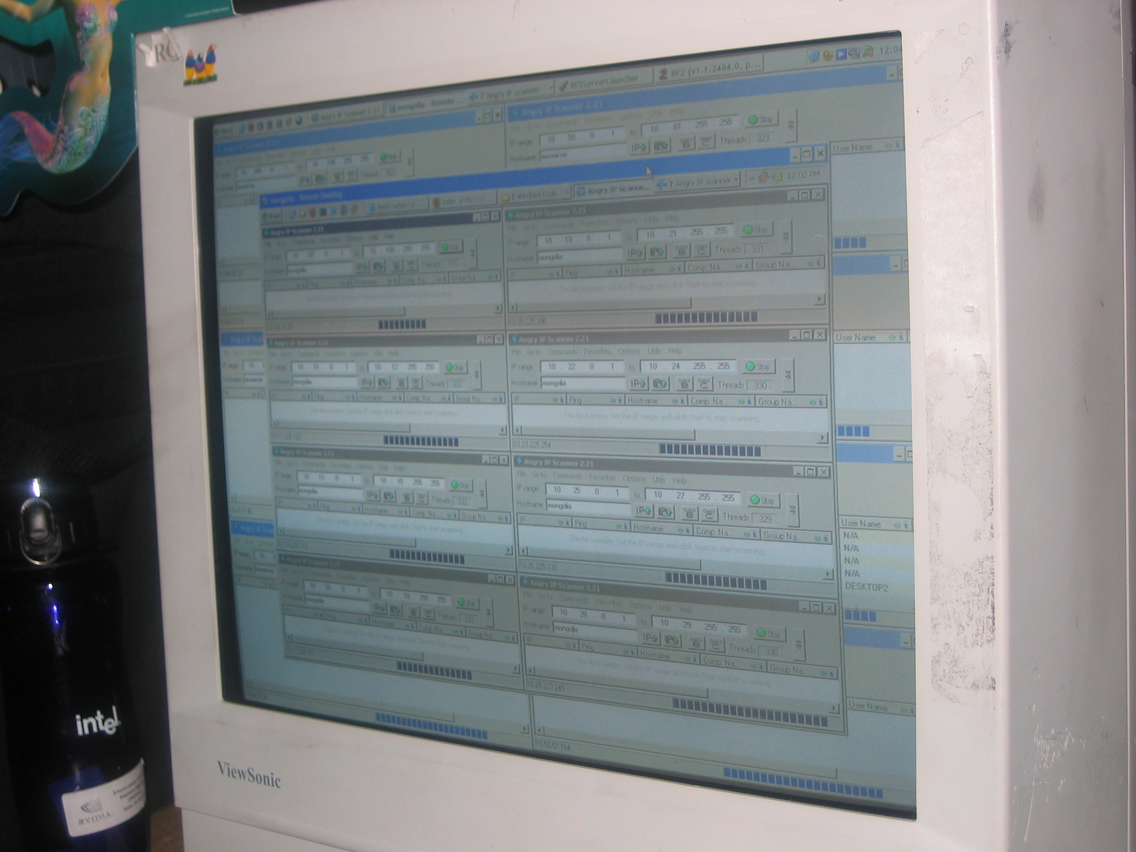 At one point Kaffine went back to the hotel to sleep, and Kraz had the brilliant idea to make use of the full power of Kaffine’s PC while he was away and not using it. Kraz put his computer to work and had it scan IP’s as fast as it could go. At this rate, it looked like we would be on track to find the gateway in much less time. Unfortunately, Kraz totally spaced out when he set up the scan and included the broadcast range as part of the scan. That meant he was sending broadcast packets out to the ENTIRE network several thousand times a second, essentially it was like we were launching a Denial Of Service attack on the network.