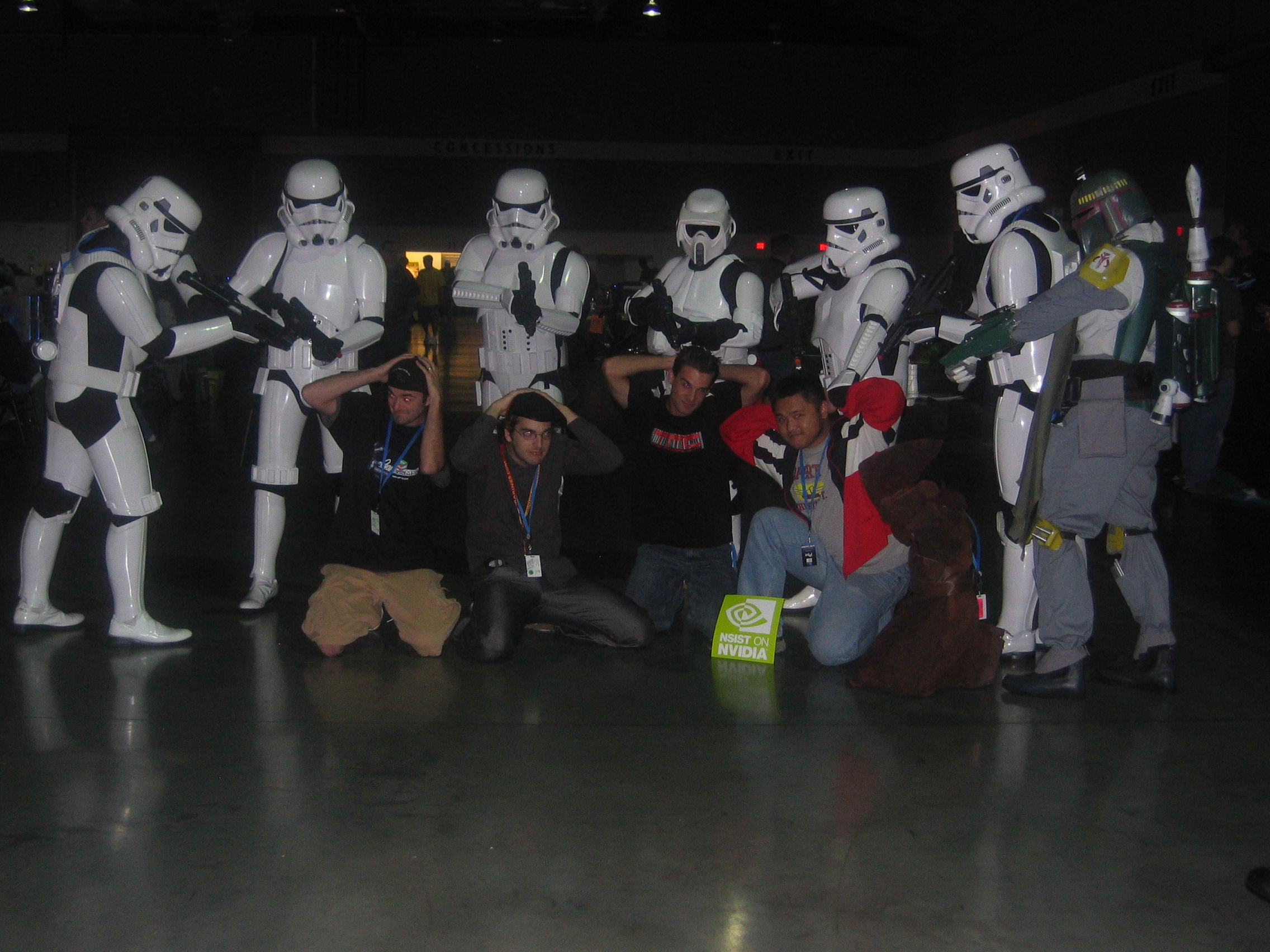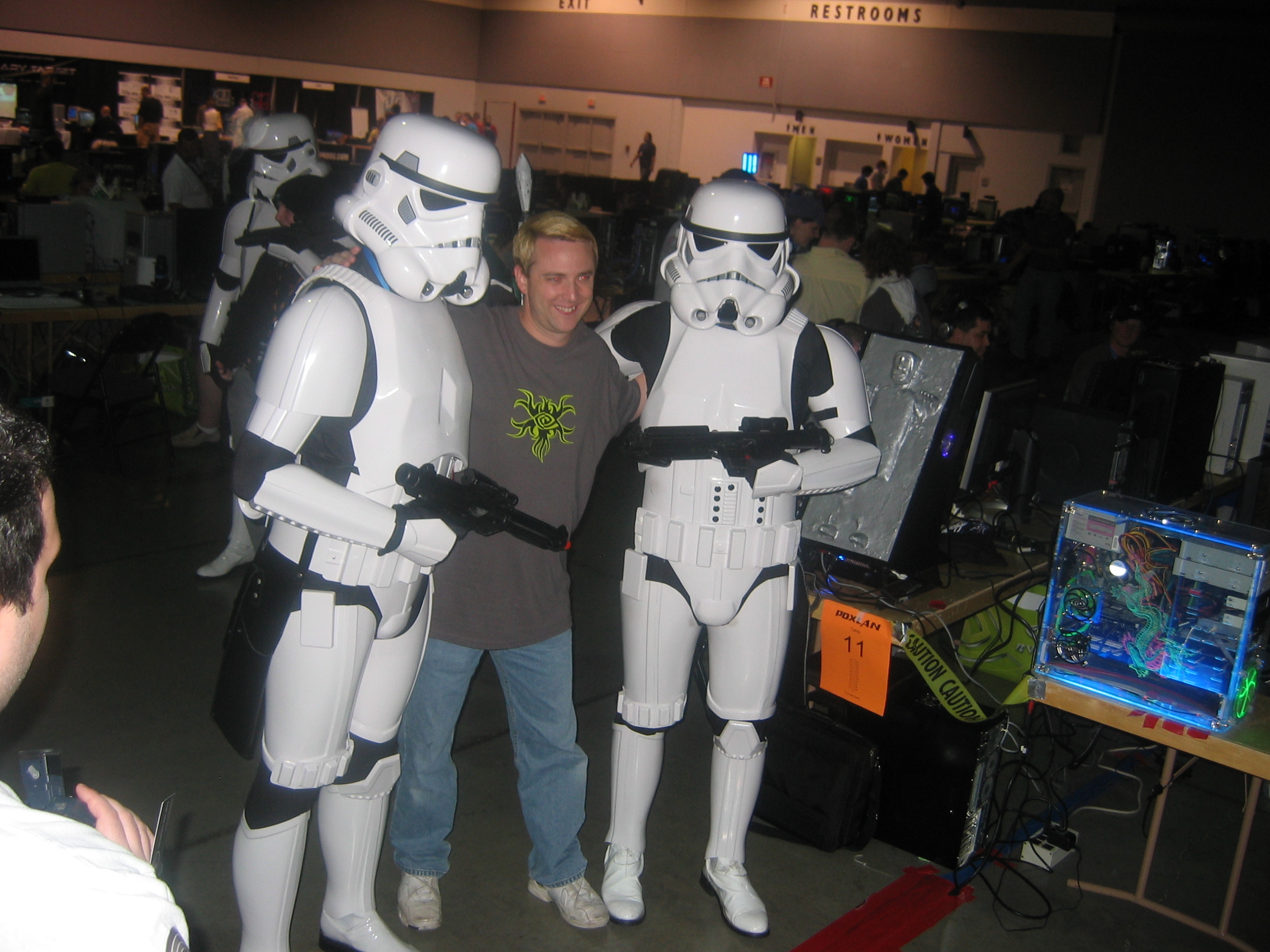 At one point during the lan we were invaded by a whole crew of Star Wars Storm Troopers. They all came in and everybody flipped out. It was awesome. Boba Fett was there too, and they even had a Jawa. Of course we got our pictures taken with them.