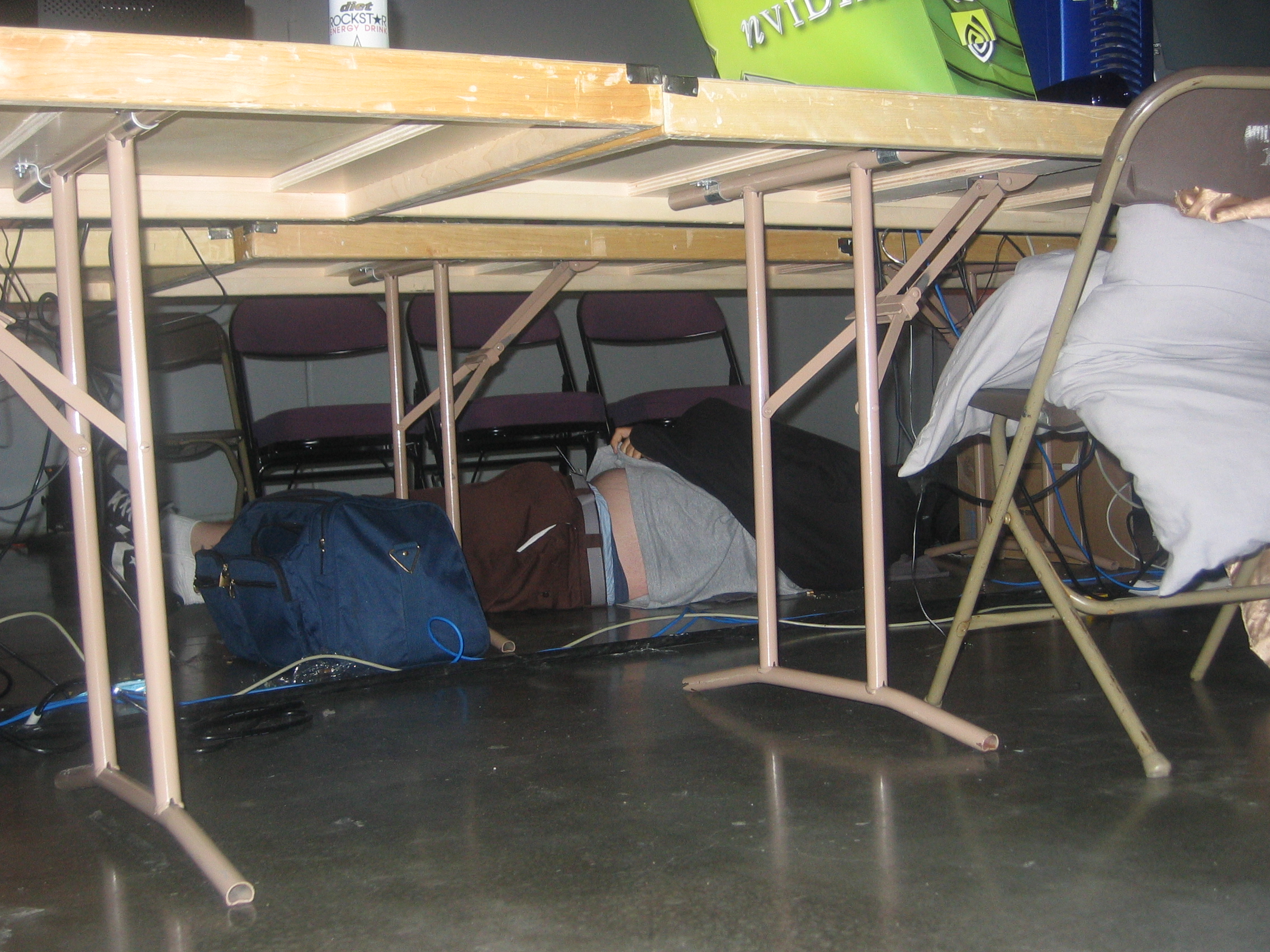 The LAN lasted for 4 days and as far as we could tell Kuyaglen never actually went to bed, although he may have gone into the hotel room maybe twice. At one point he totally passed out right in his seat at the LAN. He woke up hours later only to find out he had been literally “owned in the face”. Someone had come and drawn various things on his face with a black sharpie. I think they even displayed this on the huge projector screen at one point. We don't know who exactly did it, but I suspect the guys from the wKa clan.