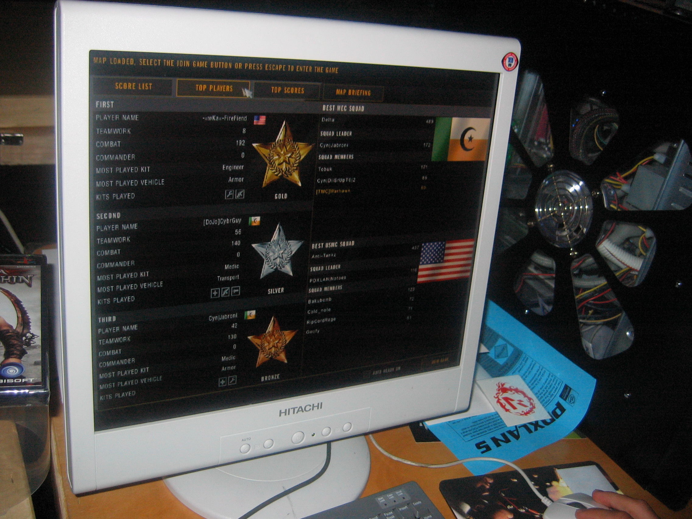 Speaking of the different clans. There were several world class clans in attendance. The top Battlefield 2 teams in the world were there. The table across from us had team Enigma, which flew in from all over the country to be there. They were a good team, but they got owned by TFS, which also flew in from all over the country to be there. TFS was then owned by team Paradigm Shift, who then went on to own wKa in the finals. TMC pretty much just said "screw that!" and stayed in bed and slept in on that day. That's how we roll!