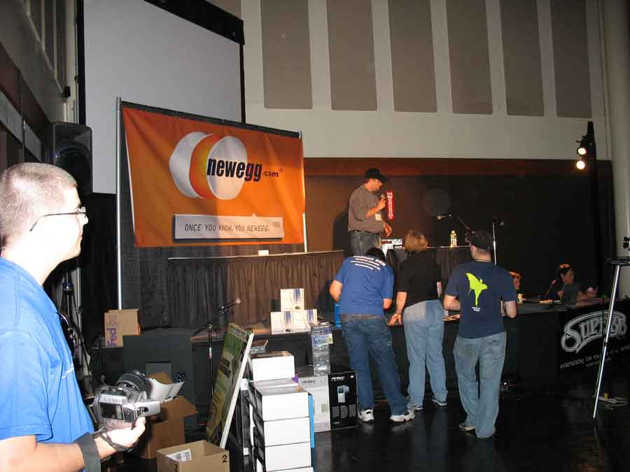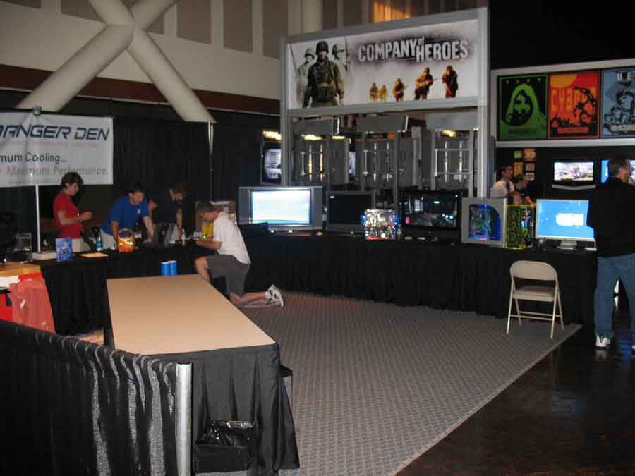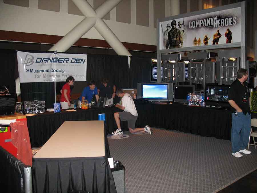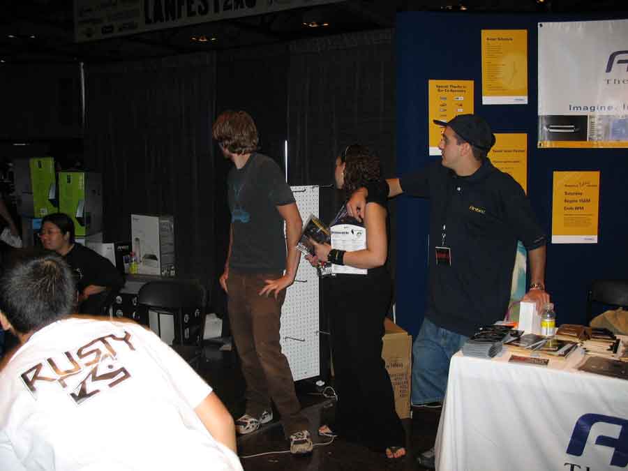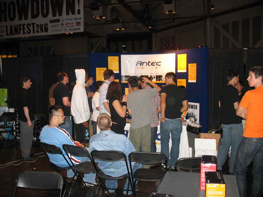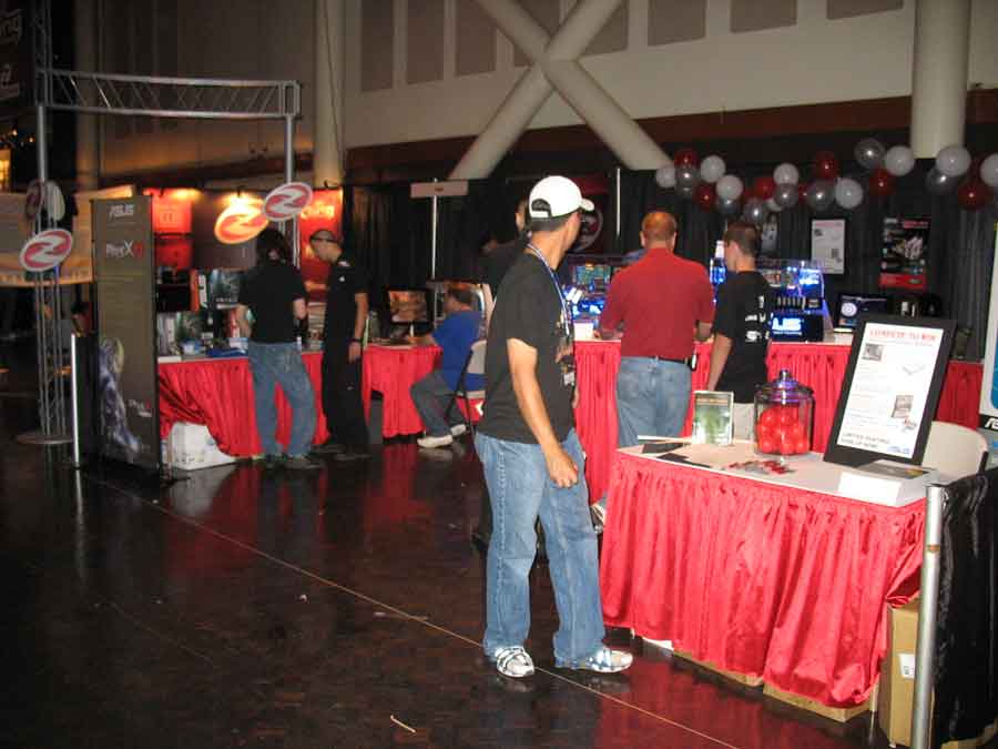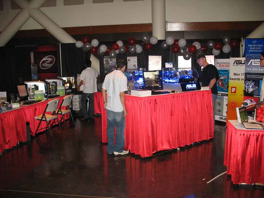 Sponsor booths were setup for Antec, Intel, THQ, Abit, Patriot, Ageia, Crucial, OCZ, Killer NIC, ATI, Newegg, Zalman, Corsair, ASA Computers, Danger Den, ASUS, Zboard. Sponsors showed off their latest hardware and software as well as give attendees a chance to win cool prizes.