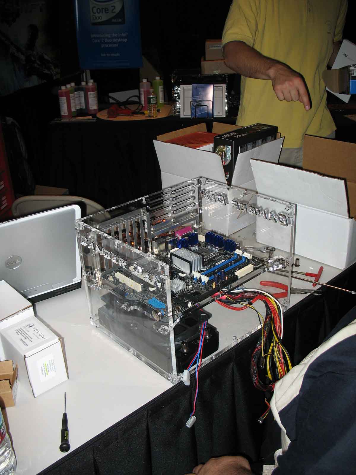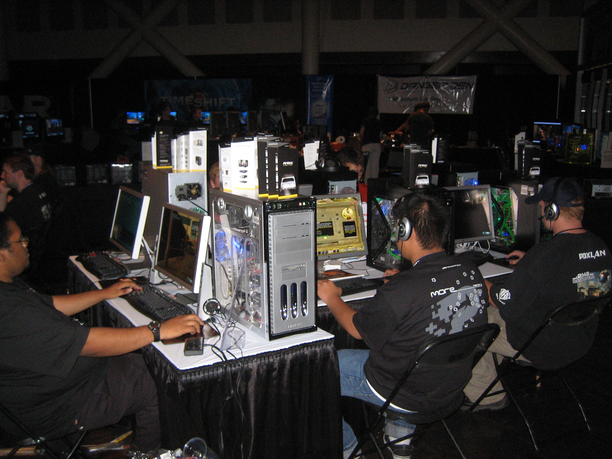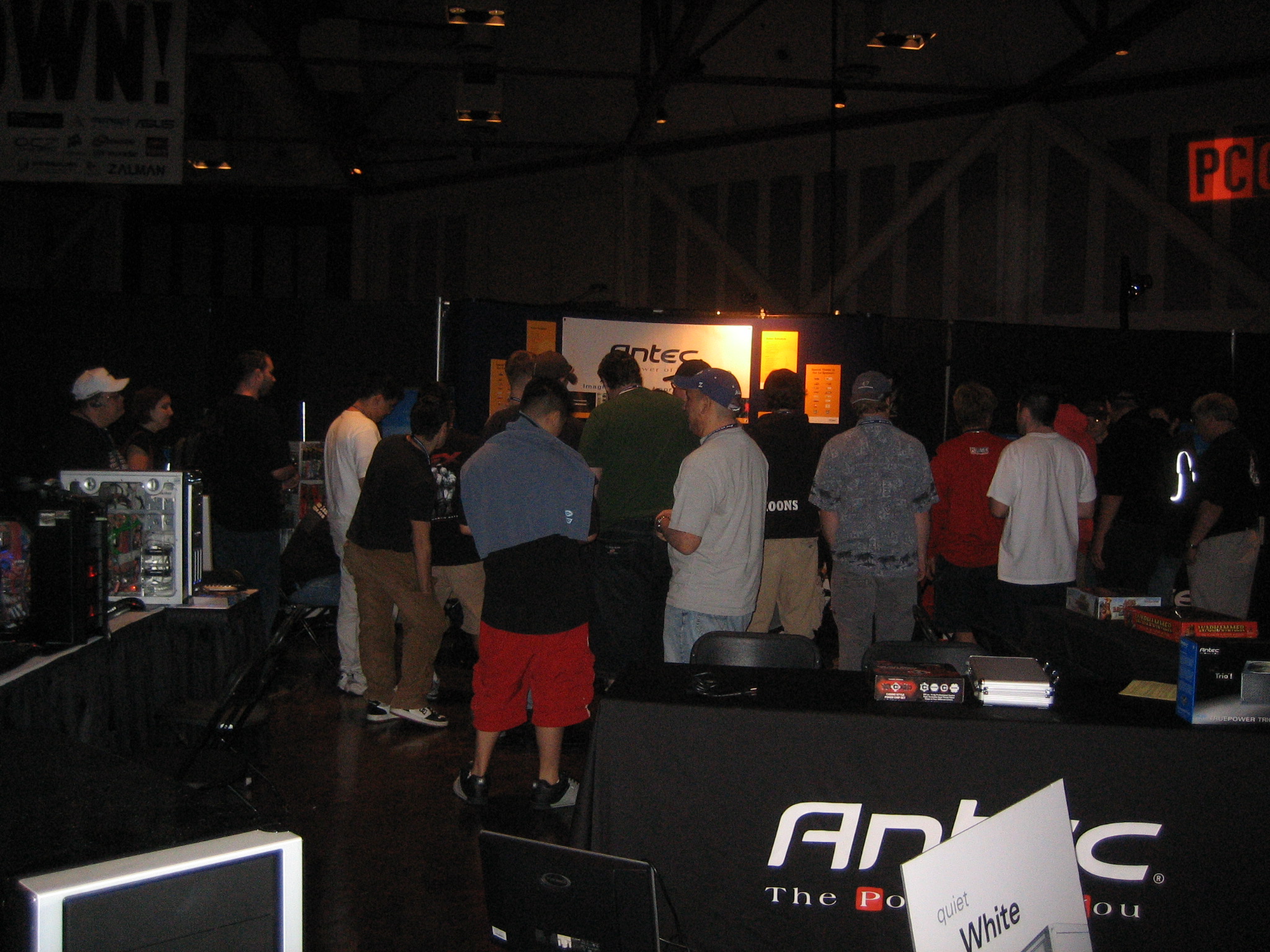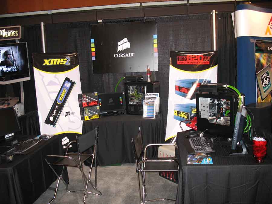 Sponsor booths were setup for Antec, Intel, THQ, Abit, Patriot, Ageia, Crucial, OCZ, Killer NIC, ATI, Newegg, Zalman, Corsair, ASA Computers, Danger Den, ASUS, Zboard. Sponsors showed off their latest hardware and software as well as give attendees a chance to win cool prizes.