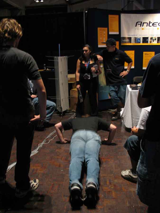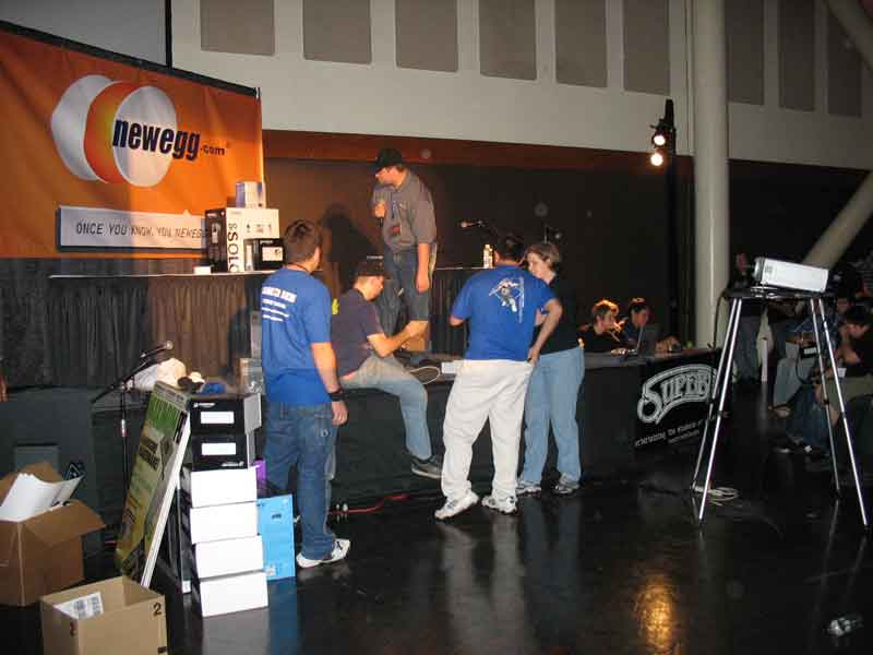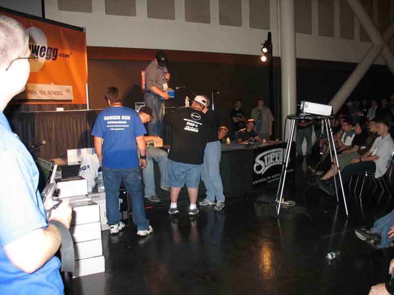 Sunday morning was just getting in on as many sponsor raffles as you can and playing GRAW on the free-to-play Antec gaming area for a while with Ginger|R|. KraZ got into the Intel overclocking presentation and again won an Intel Extreme Edition proc and mobo (3.7Ghz and 955 chipset). The Abit guys came around and awarded me with a cool Abit watch because I displayed my Abit mobo on top of my computer.