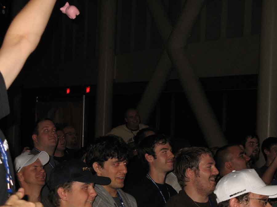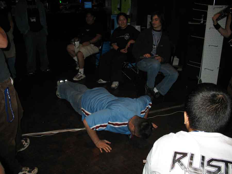 Following the DangerDen thing was Warhawk with the Antec PSU toss. People were almost killed and everybody cheered. The Crucial guy won and Mameman took 3rd. Crucial guy then held the 100v100 dodgeball contest. CSI Little Asian Kids had the highest kill/death ratio. Metalslug had missed a golden opportunity, missed was left vaulnerable but was still able to escape some (as he taunted in the heat of battle) bitch.