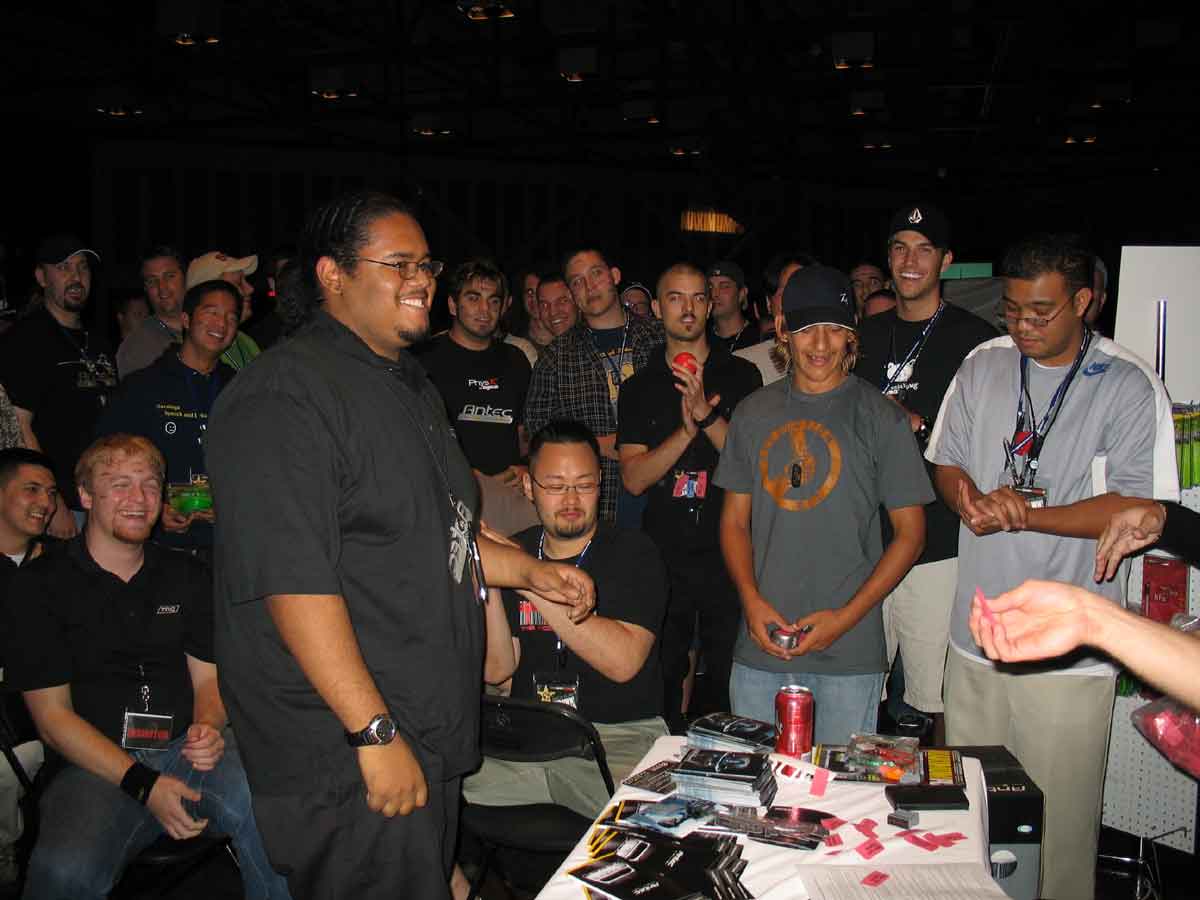 Of course, running these contests and promotions also meant that the event was more demanding on those of us staffing the booth. Since Antec was perpetually low budget and understaffed, I had to get creative in finding helpers to assist with the various activities at the booth. To accomplish this, I recruited some TMC members as Antec volunteers to help me run the booth activities. JonDom’s proved to be especially effective as his loud booming voice became a human bullhorn that was extremely helpful in coordinating contestants for the contests, calling out twister colors, or musical chairs rules. The TMC members that volunteered would then be rewarded with free product for their services. It was an arrangement that was mutually beneficial for both groups and using TMC members as Antec volunteers became a regular thing at LAN events.
