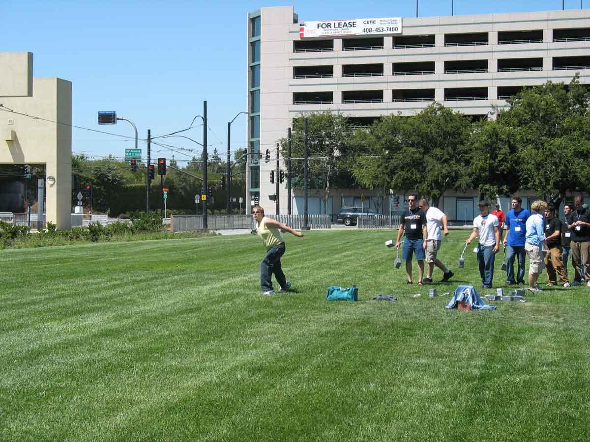 Antec hosted a PSU toss contest. For this one, we brought in a bunch of broken PSU’s from our warehouse and had a competition to see who could throw it the furthest in the grass field. This turned out to be a lot more dangerous than we had envisioned, especially since we didn’t think to set any guidelines as to how the PSU should be thrown. At one point a particularly burly AMD employee decided to try his hand at it; what he did was dangled it by the power cables, and then spun around extremely quickly and let it sail. It was basically the geekiest hammer throw you’ve ever seen, and also the most terrifying. There were people standing mere feet away from him as he spun this flimsy metal box at breakneck speeds. I shudder to think what would have happened had it let it go at the wrong time and flung it into the crowd behind him instead of the field in front of him. “Lets not host one of these ever again” was a thought that went through my head, as I pondered how quickly I’d be fired if this went awry.