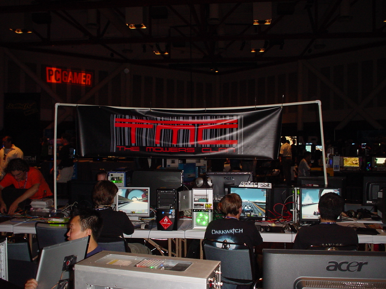 Through no fault of Hawtie, our shirts were not available, but what she was able to pull of in time was providing a pwn sauce TMC banner. Mucho Thanks for taking one for the team (the banner appearantly made a crack on her windshield). Table 8 err...the TMC section could not be avoided by anyone. If you were on the mainstage and looked towards the crowd our banner was there, if you were in the BYOC and looked towards the booths our banner was there. If you turned your head to see who was yelling out "In the butt" or "Damn you SilentDeath", our banner was there.
