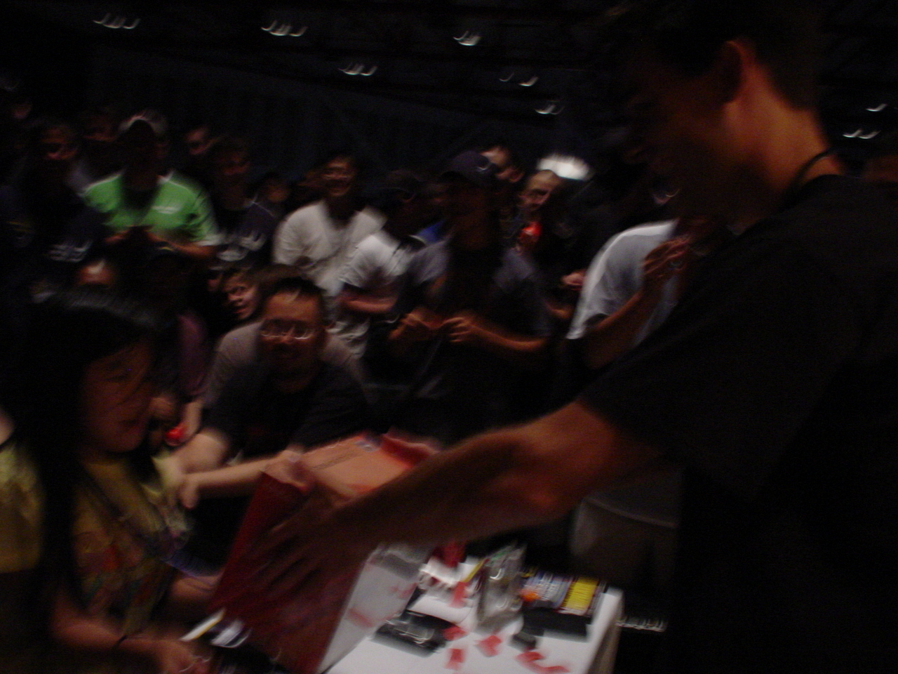 With everybody to the front Dima got all of table 8 in the back. When Vector was handed the number of table, we all chanted "TMC, TMC, TMC", when ever Vector said, "Table 8" we all cheered. When every someone's seat was called, the crowd initiated the 10 second countdown unclaimed prize limit for the next seat.