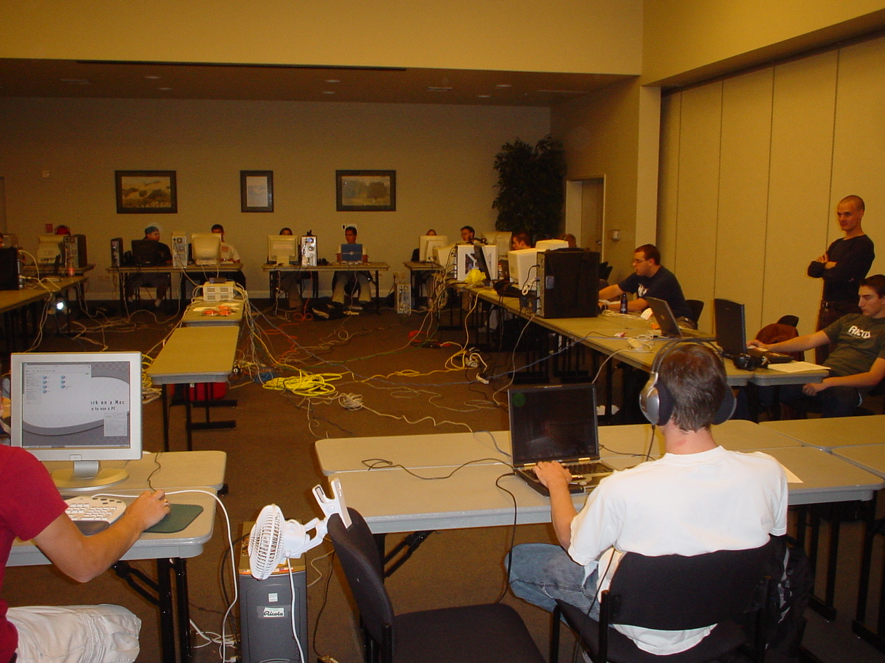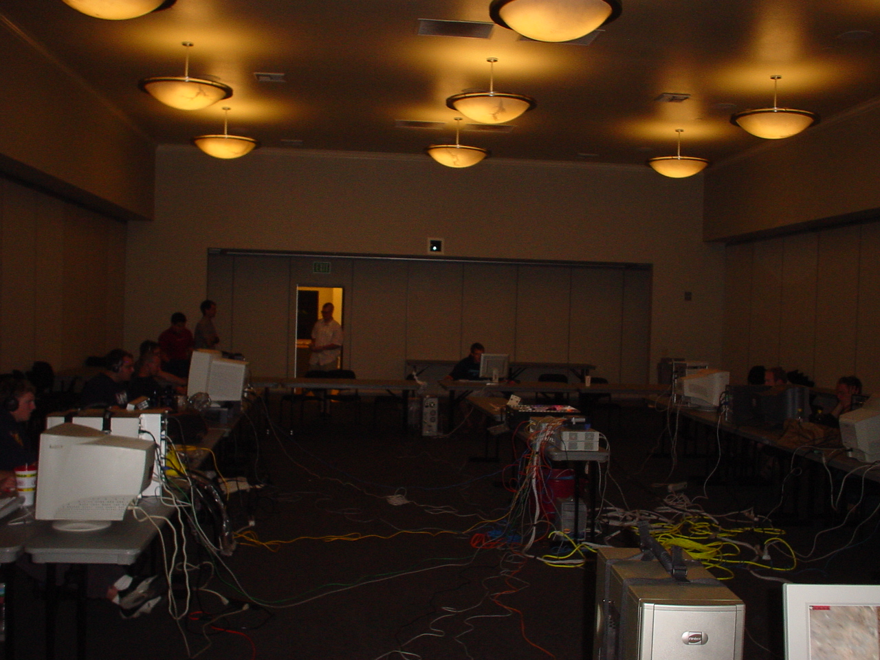 The staff did a good job of preparing for this, by printing out nice instruction sheets on how to use virtual drive software, and mount images and the like. They also were kept busy troubleshooting various problems with getting CS to work on some of the jerry computer systems that people brought. Speaking of Jerry computer setups, there were quite a few, including serveral HPs and Compaqs that were barely powerful enough to run CS ... which explains why CS was so popular.