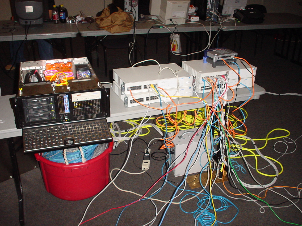 The LAN staff's jaws dropped as I lugged in the massive amounts of equipment, and they were impressed yet again, when Kraz arrived with his Uber Rackmount Server with 50 gigs of filesharing goodness. It was clear that Kraz and I were definately the LAN verterans amoung this group, as most of them were painfully new to a lot of LAN protocol, that most of us take for granted.