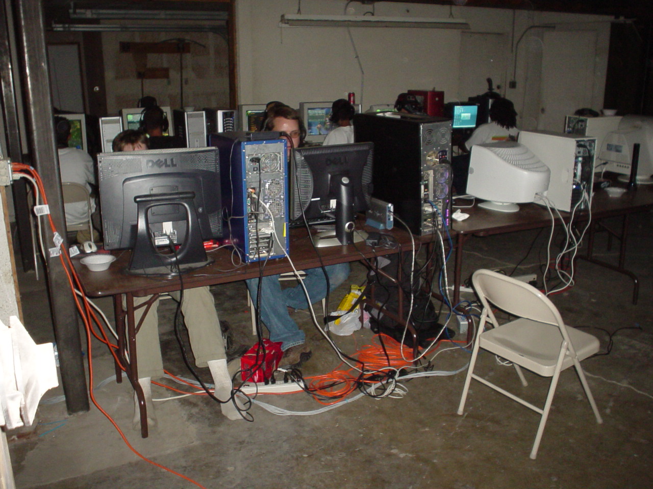 Kaffine invested about 200 dollars into networking cables and created some really nice cat 5 snakes with junction boxes on the end. Before we began promoting a public event we wanted to have a smaller trial event with primarily TMC members and other close friends. This first event, which we called “TMC LAN 0” was held on September 18th, 2004 and had about 25 in attendance.