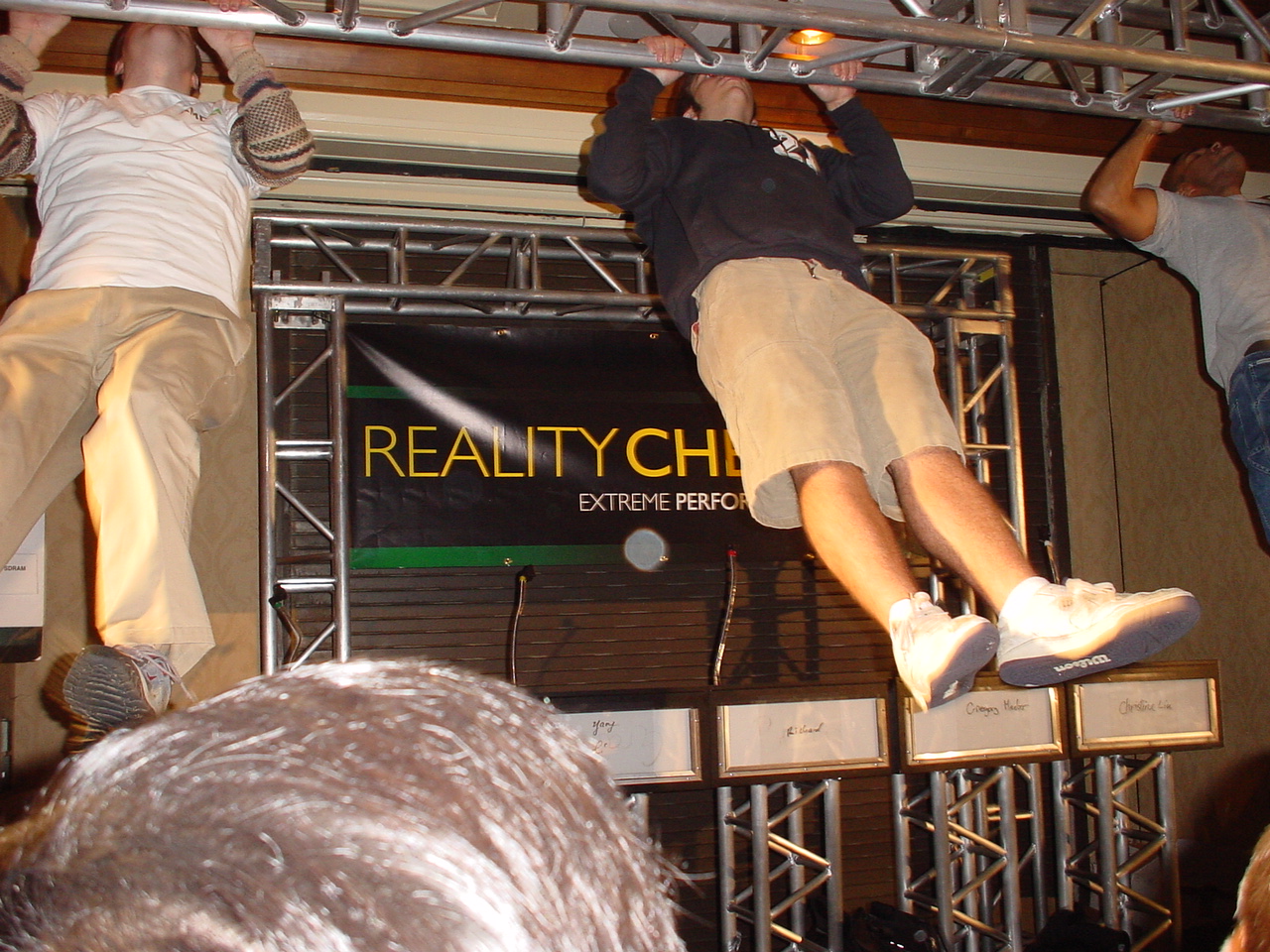 Besides the game show, there were other events such as a dancing contest, and a pull-up contest. They were even able to find an Intel employee in the audience, who they then forced to wear AMD gear.