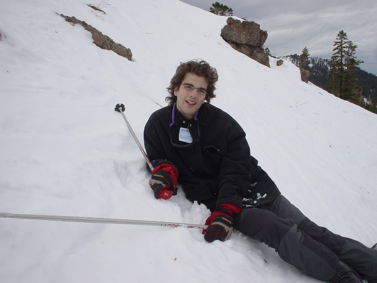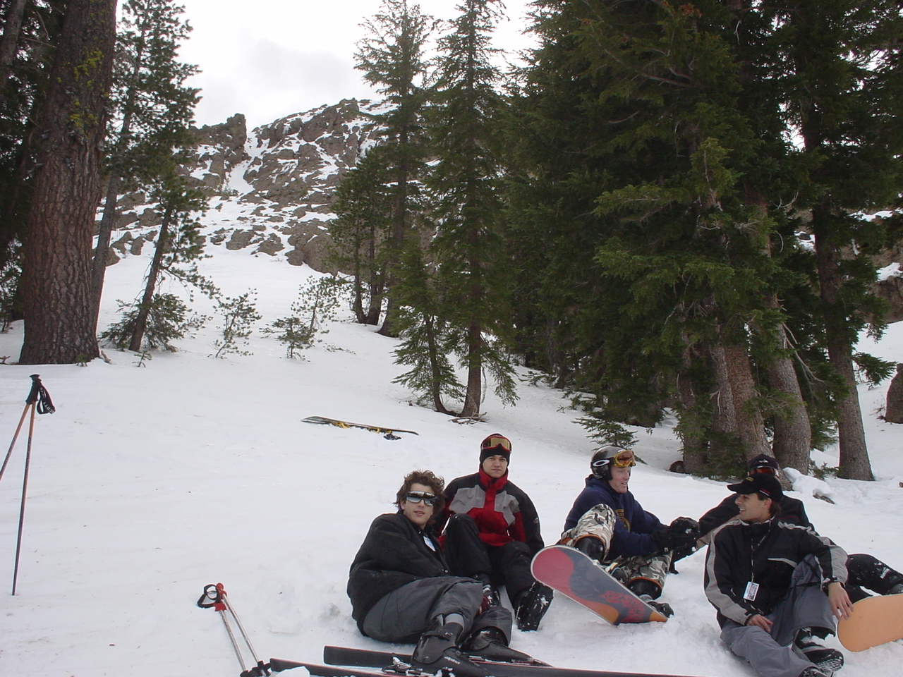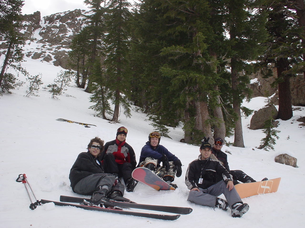 Finally we arrived at Kirkwood, and met up with Spiderman and his brother Psychosomatic. Unfortunately the Kirkwood day passes are quite overpriced. Dima and I purchased season passes, and then Dima aided Kraz and Arch in “ripping the system” purchasing some “discounted” tickets. Kraz went off to rent his equipment, and the rest of us hit the slopes. We stayed in contact with Kraz over the radios… that is, until Kraz lost his on the very first run of the day. Dima then embarked on a quest to recover his lost radio by announcing that he was missing a radio over his remaining radio. These announcements were made roughly every 2.9 seconds, until finally, a girl (who we will call Lisa) answered. The conversation went something like this: