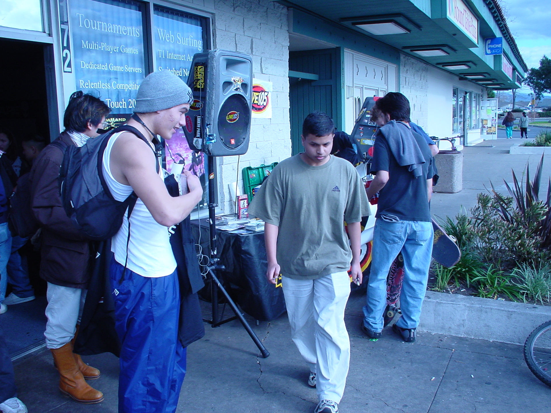 In the middle of the day the local rock station, Live 105, showed up and set up a booth outside, complete with loud music blaring over their PA system. The radio DJ (it was Jered, or DJ with no name, I'm not sure which) was there harassing just about everyone that walked by. The Westwood PR lady was shaking her head and looked pretty embarrassed. She kept commenting that someone was probably going to call the cops. It was great! The DJ kept shouting "Be a RENEGADE!!" to just about everyone that walked by, and "this is the last day of the tour. The grocery store will be there tomorrow, this wont!!!" to anyone who went in or out of the nearby grocery store. He was giving away movie tickets and copies of the C&C games and making people do crazy antics to get them. He made one guy stick 16 temporary tattoos on his face and run into the middle the the parking lot and yell "Renegade!" and bunch of times. He had a couple people (grown adults) do a tug-of-war over one of the game boxes. They ended up thrashing around on the ground trying to pry it out of eachothers hands. The DJ yelled "stop the violence!!" and made them stop. It was funny. Even the DJ was shocked they got that into it. He told another guy to run into the Mc Donald's across the street and bring back with him three people to try out the game. The guy took off running and sure enough he was able to round up three total strangers. It was amazing. Another guy climbed to the top of a tree and screamed "I'm a renegade!" So, yeah, there was a lot of people yelling "Renegade" out there today.