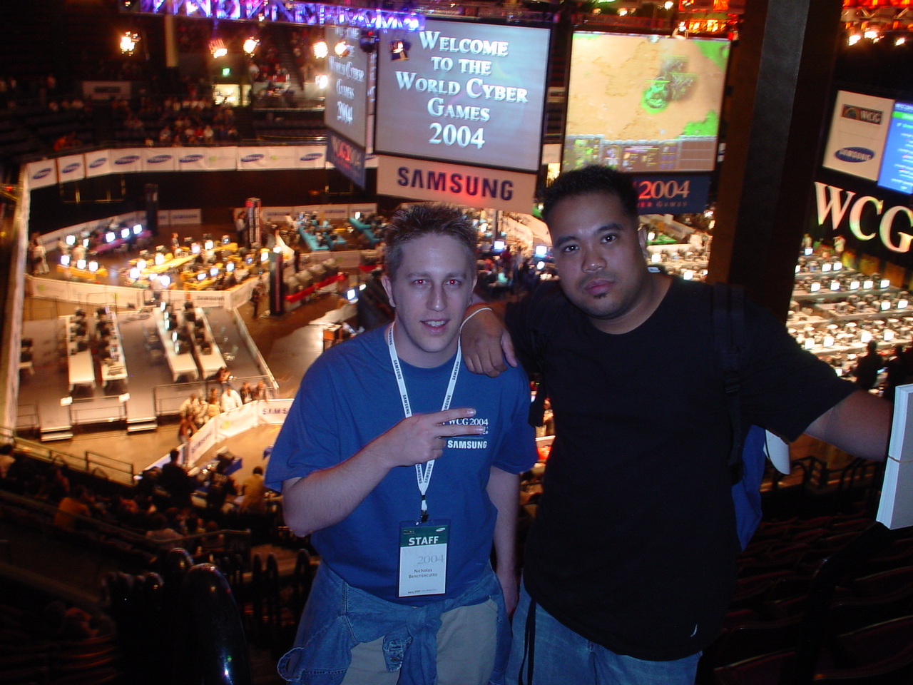 Once we were done with said errand we headed over to the Bill Graham Civic, where the World Cyber Games 2004 were taking place. Once we were outside, Gatekeeper came out with "Uncle Phile" from Nvidia and hooked us up with free passes to the event. I don't recall the circumstances of this, but I believe Gatekeeper was doing some kind of volunteer work for Nvidia at the event.