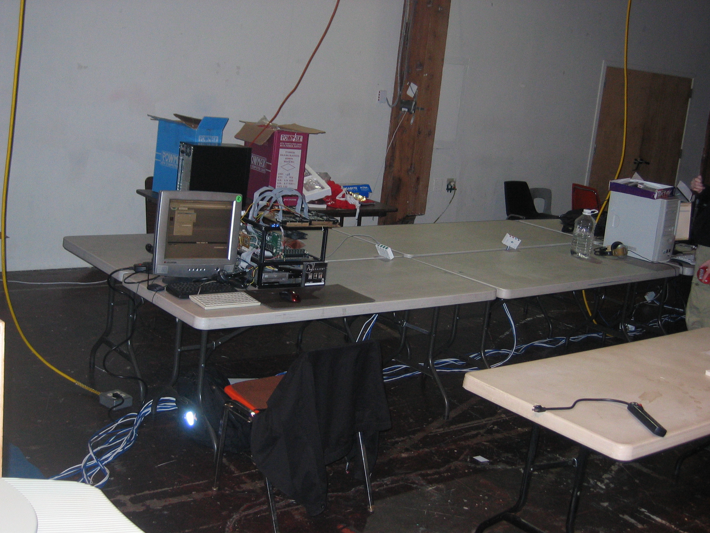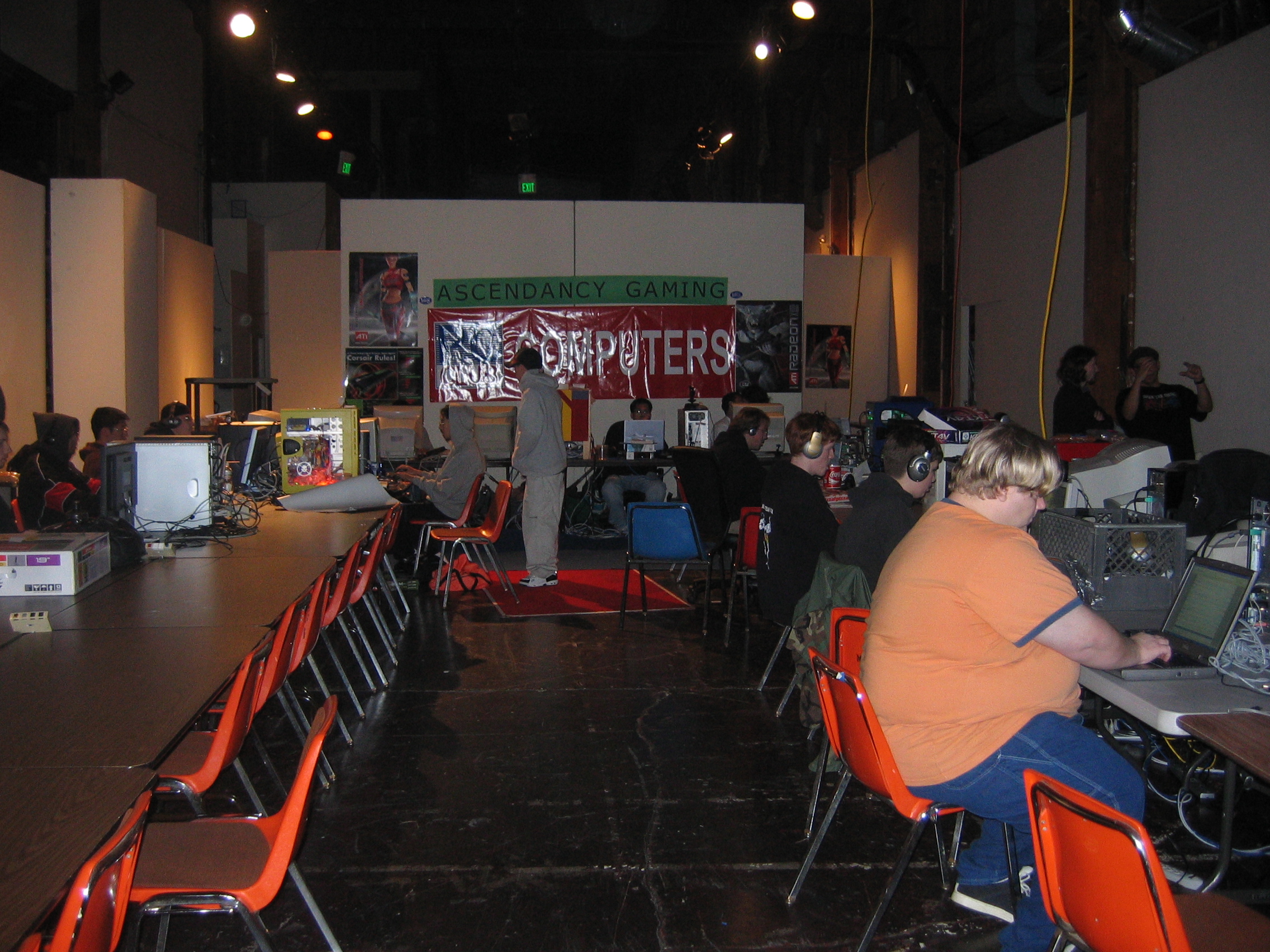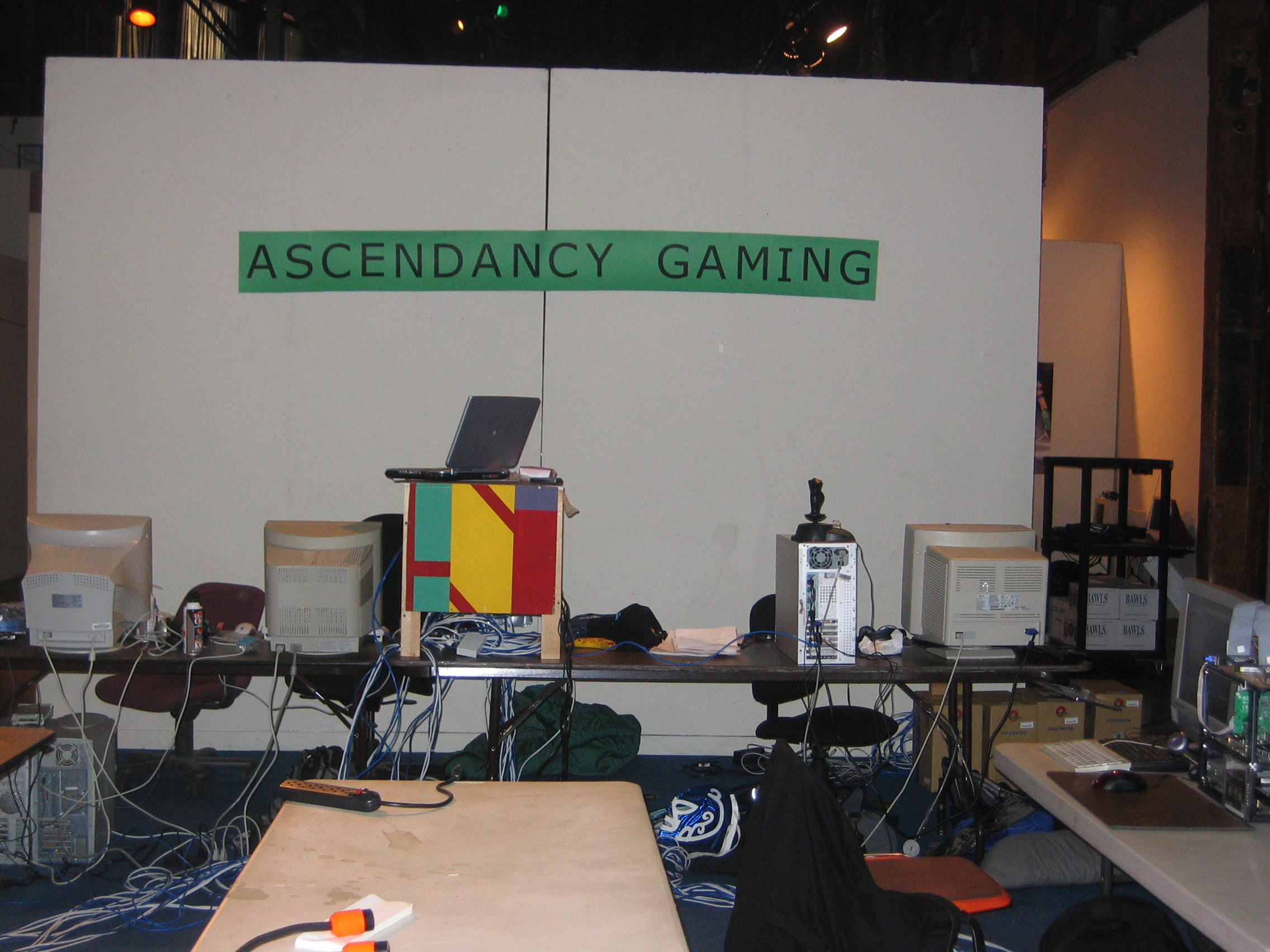 Ginger told us that he had met Gatekeeper at the World Cyber Games event in SF. Apparently during the course of their conversation Gatekeeper mentioned TMC and LAN parties, and it just so happened that Ginger was in the process of putting together a LAN in SF. He told us he had a large space available around 150 feet by 40 feet, complete with a stage at one end. He also mentioned that he was trying to get permission from the venue to play paintball in another area of the building. The organization that he was forming to host these events was called Ascendancy Gaming (AG LAN for short).
