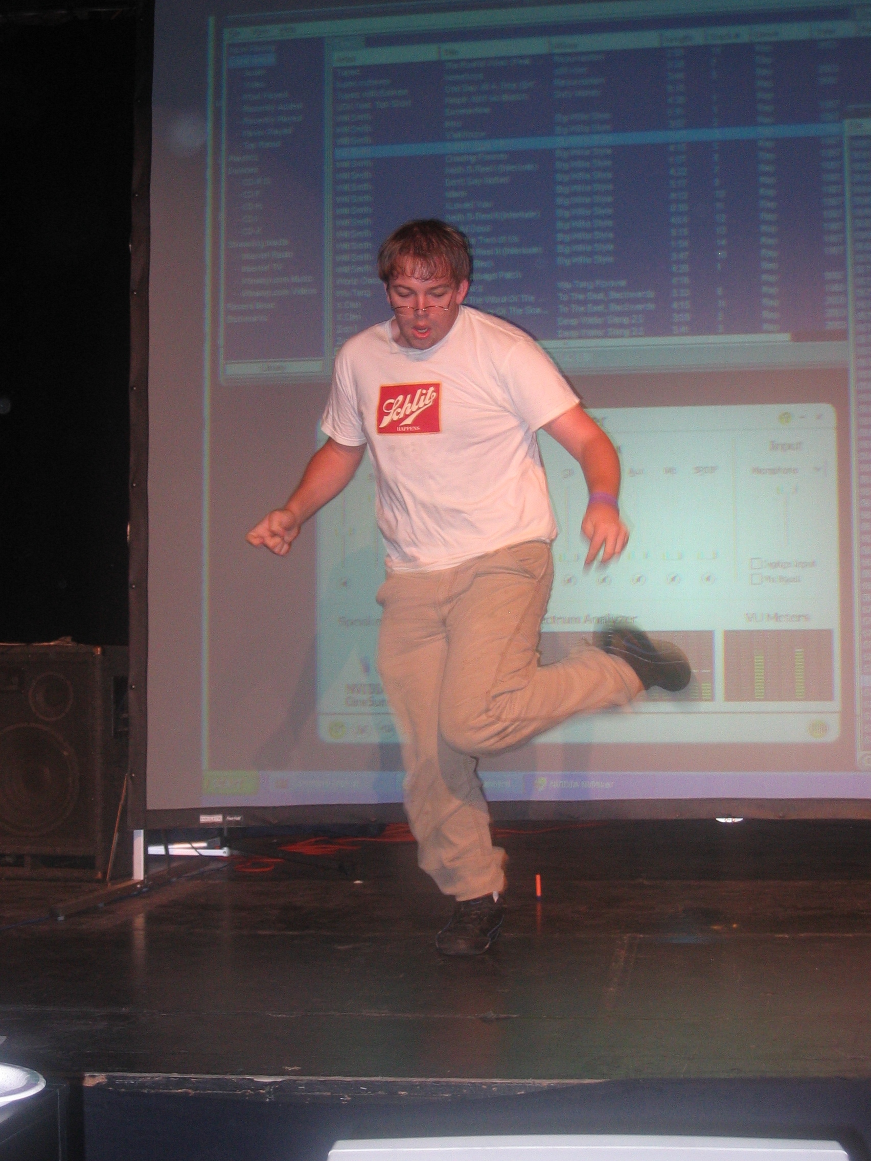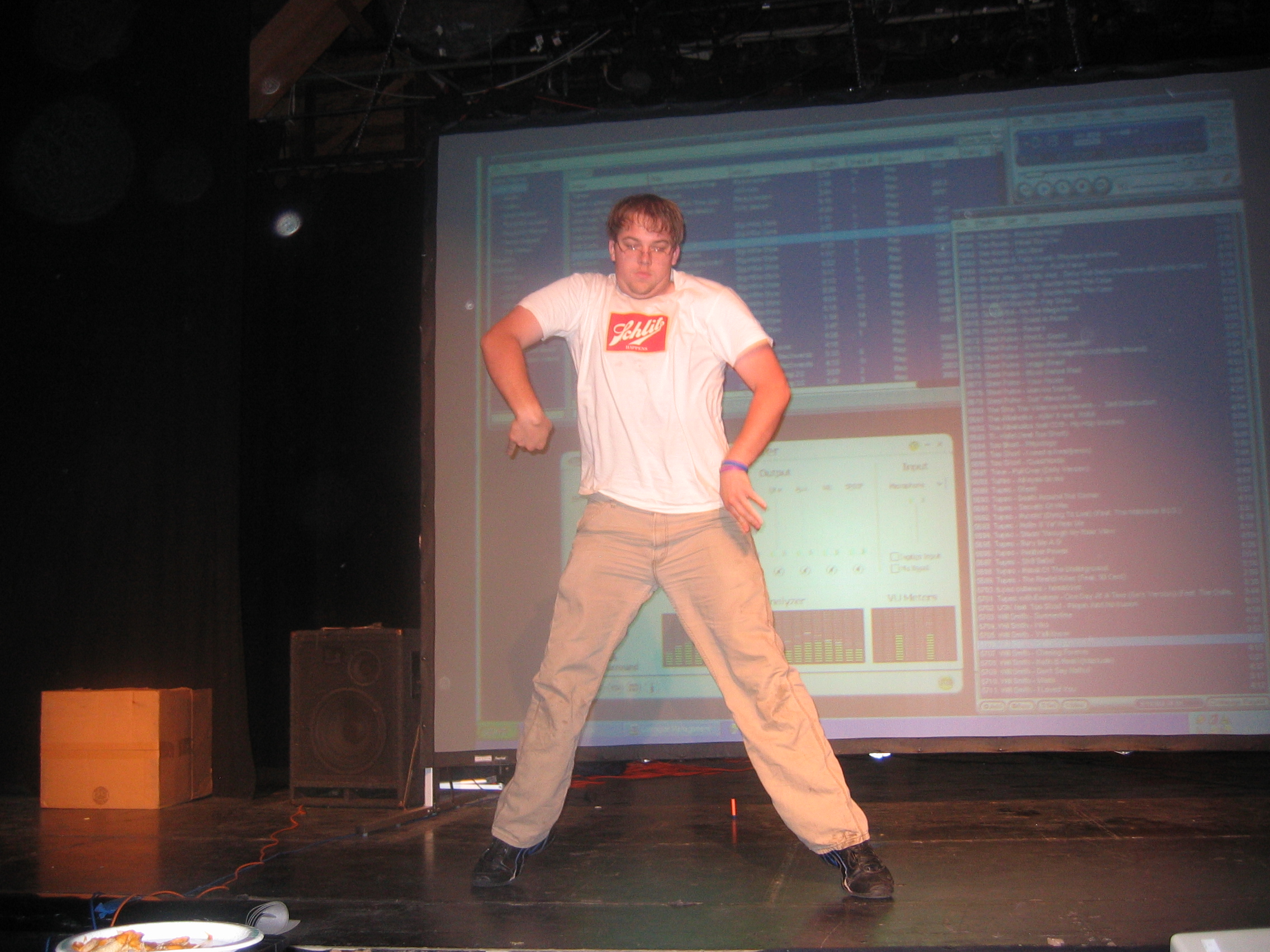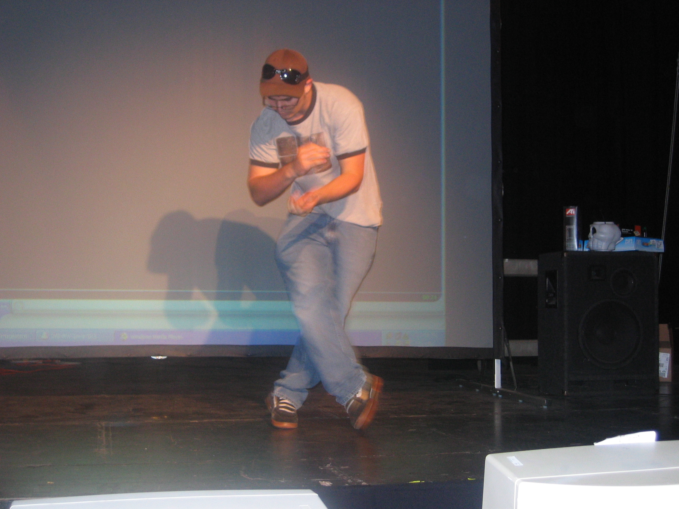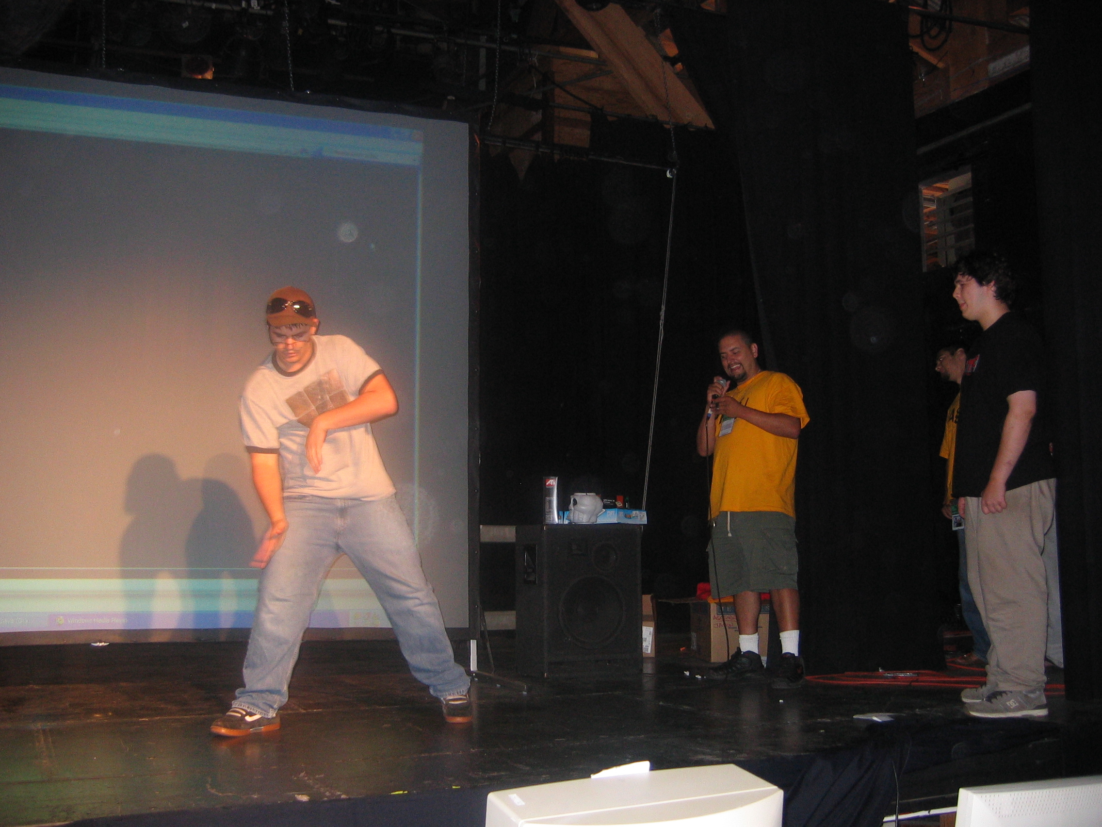 Another legendary AG LAN contest that took place at AG’s [S]ummer [s]LAN 2005 was the dance competition. In this competition, contestants were brought on stage one by one and given a few seconds to show off their best dance moves. Whoever was judged the best would win a prize. As you would expect at a LAN party, most everyone was pretty awful. A few guys actually had a move or two, but nothing to write home about, and most just did their best to flail around and look as stupid as possible in hopes of winning by providing the best laugh, and laugh we did.