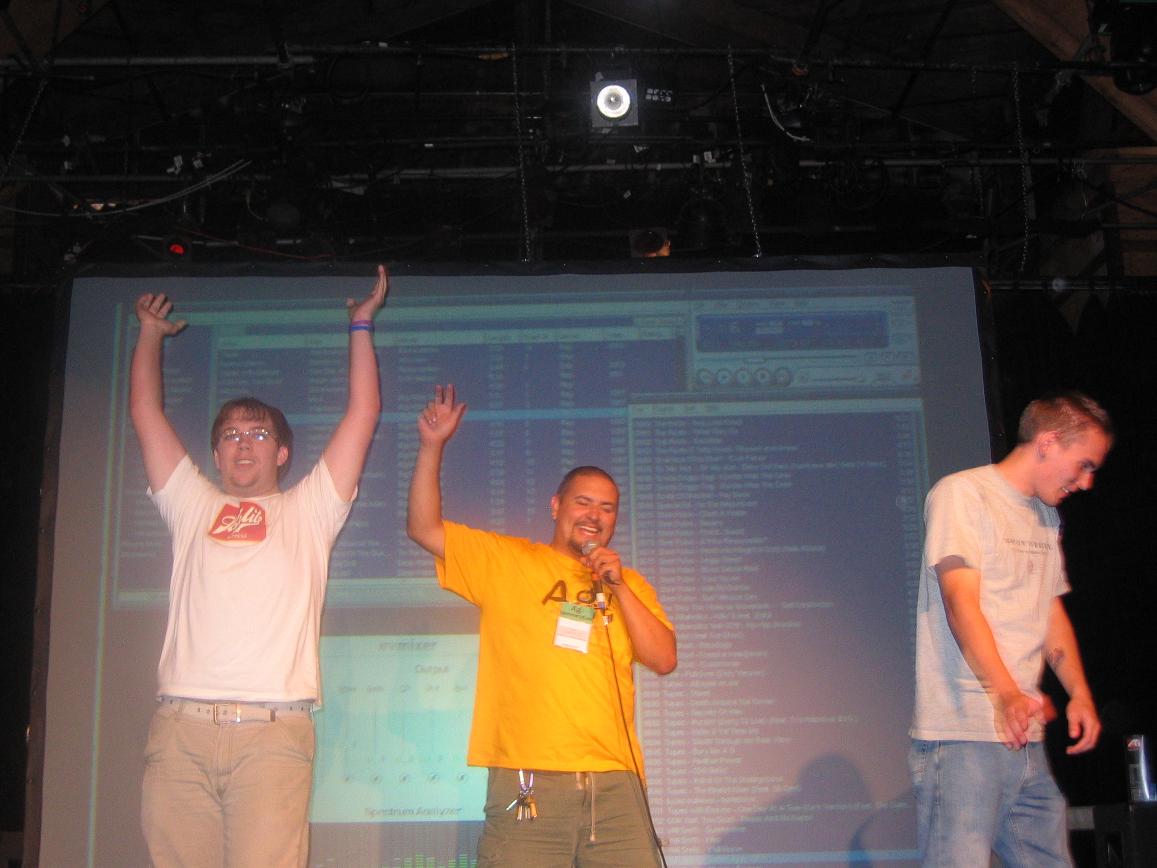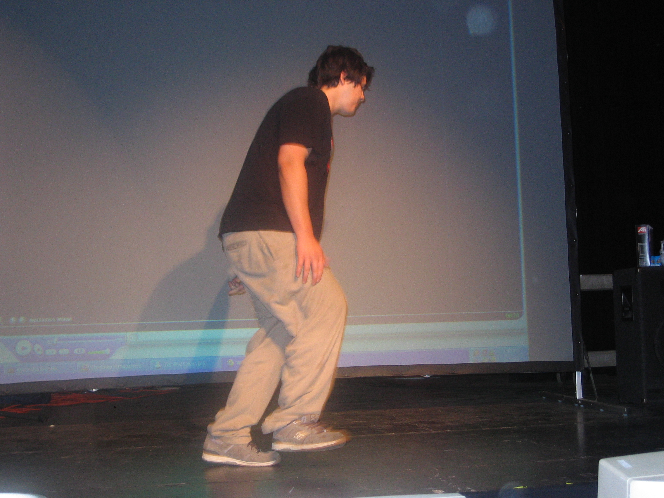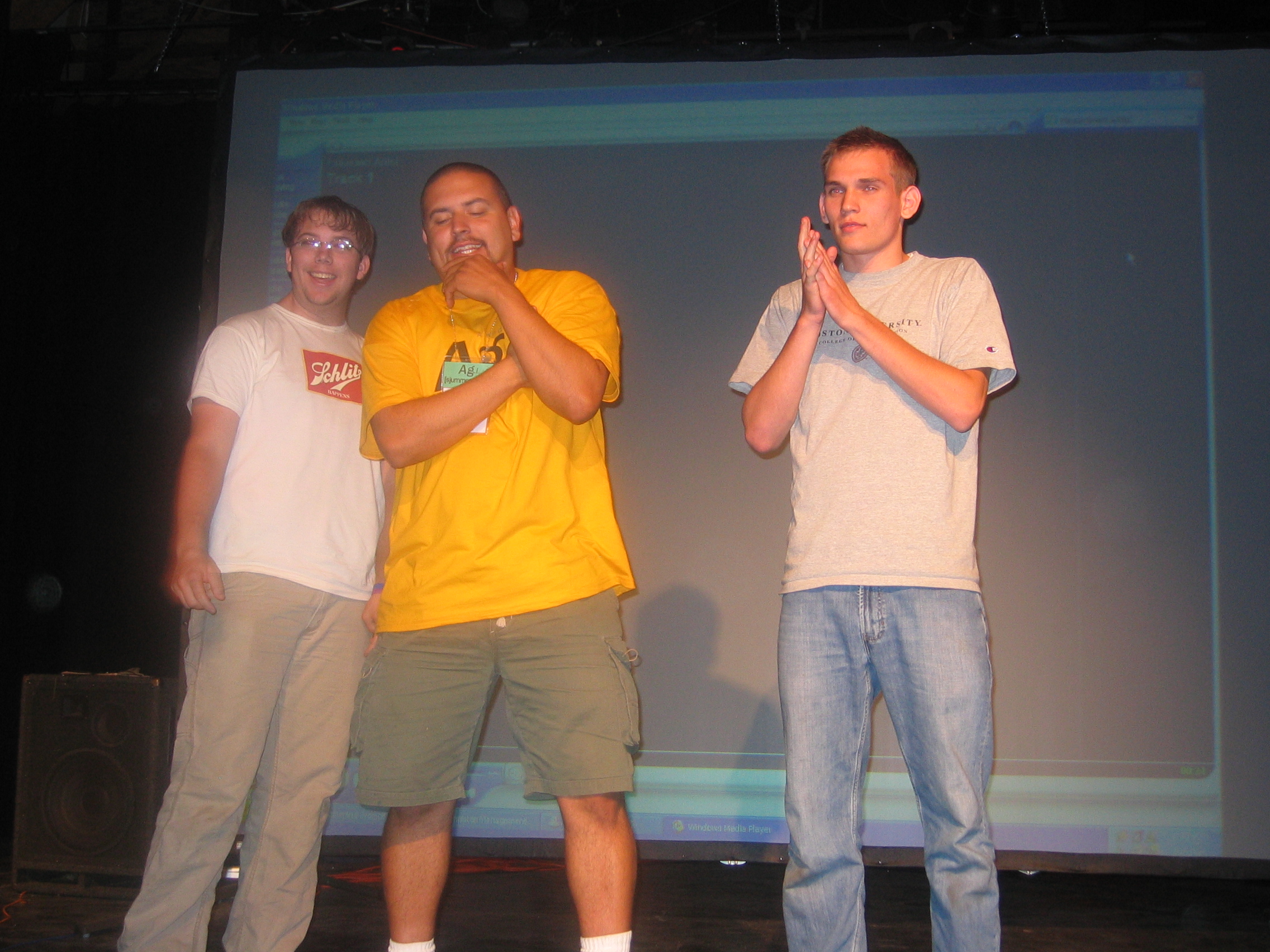 Another legendary AG LAN contest that took place at AG’s [S]ummer [s]LAN 2005 was the dance competition. In this competition, contestants were brought on stage one by one and given a few seconds to show off their best dance moves. Whoever was judged the best would win a prize. As you would expect at a LAN party, most everyone was pretty awful. A few guys actually had a move or two, but nothing to write home about, and most just did their best to flail around and look as stupid as possible in hopes of winning by providing the best laugh, and laugh we did.