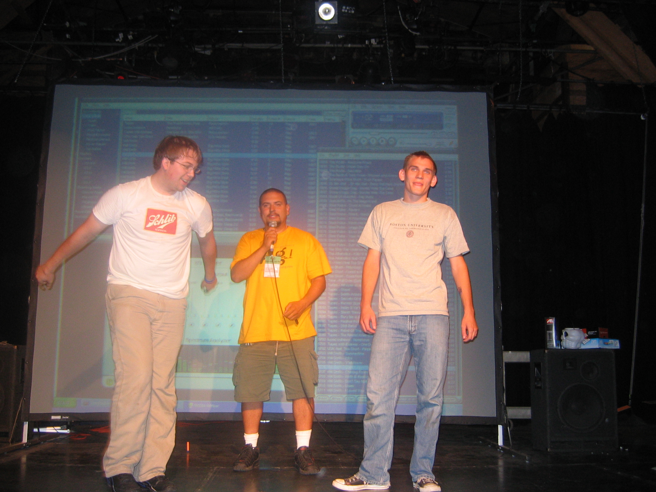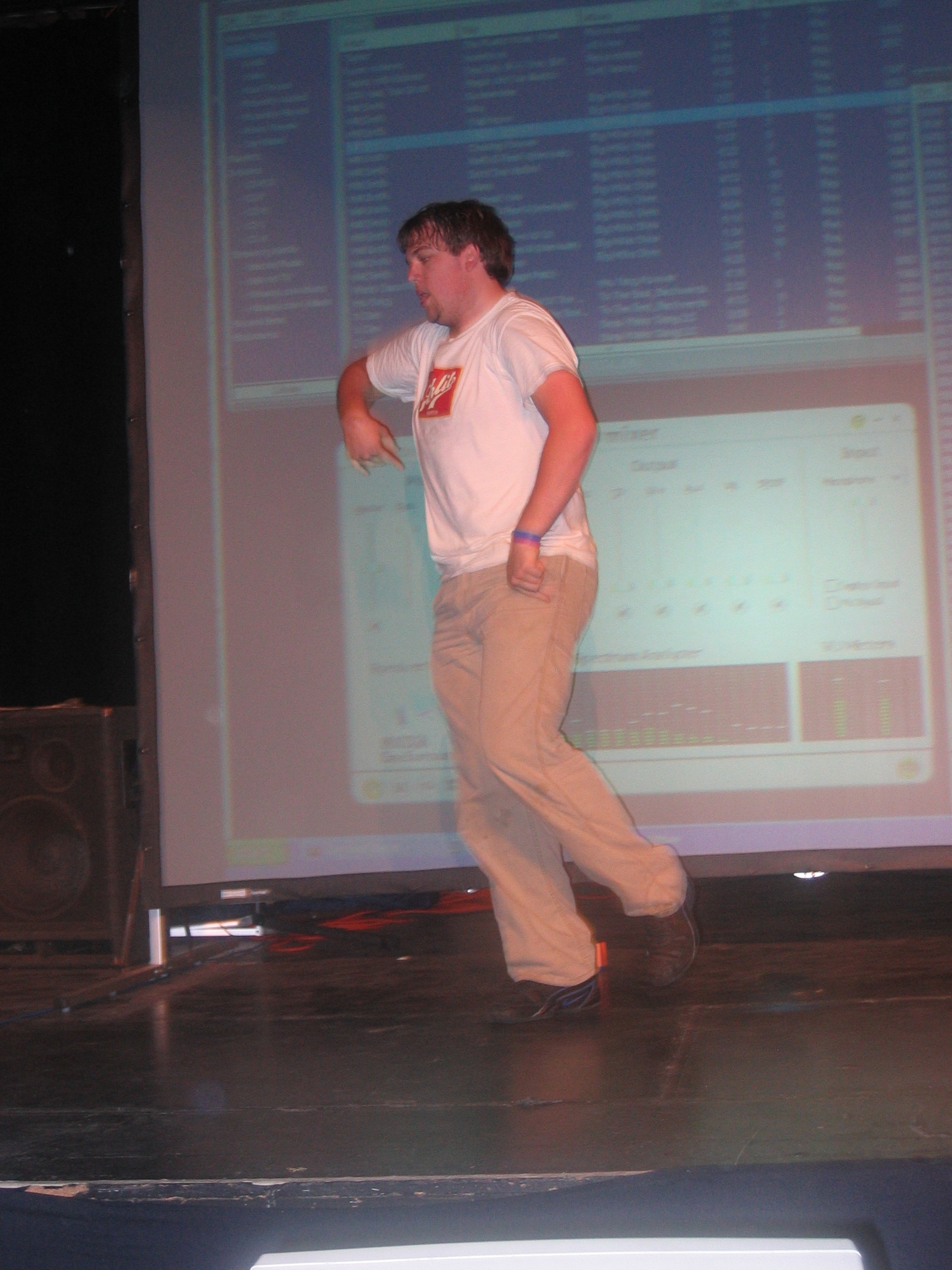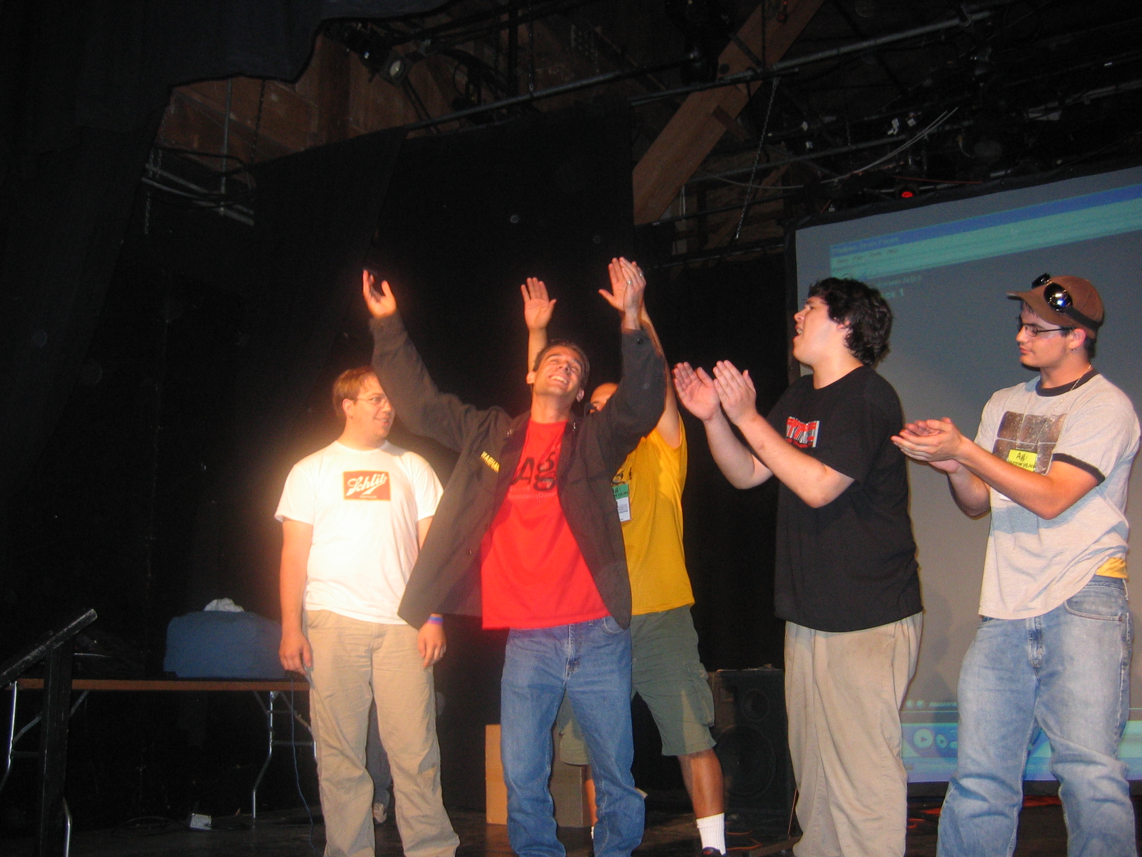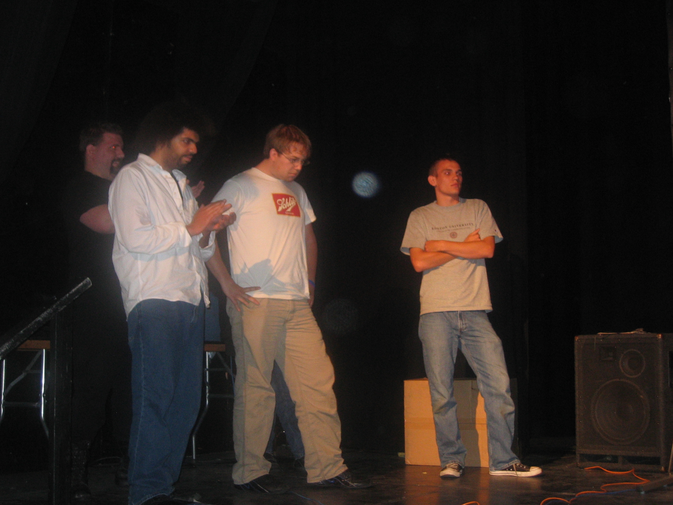 Another legendary AG LAN contest that took place at AG’s [S]ummer [s]LAN 2005 was the dance competition. In this competition, contestants were brought on stage one by one and given a few seconds to show off their best dance moves. Whoever was judged the best would win a prize. As you would expect at a LAN party, most everyone was pretty awful. A few guys actually had a move or two, but nothing to write home about, and most just did their best to flail around and look as stupid as possible in hopes of winning by providing the best laugh, and laugh we did.